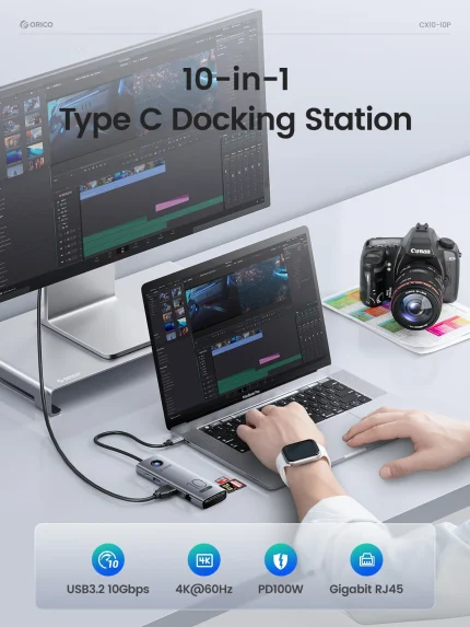 USB hub all-aluminum body. Fine craftsmanship, rugged metal housing protects against breakage and is more durable than plastic.