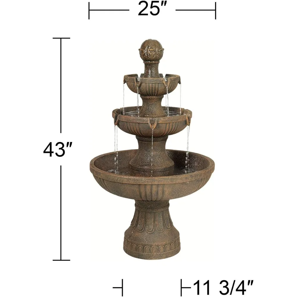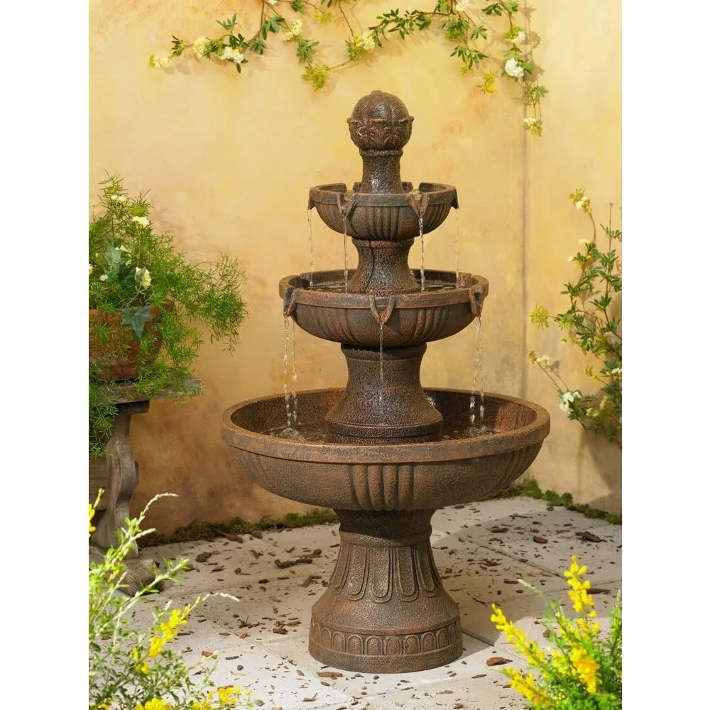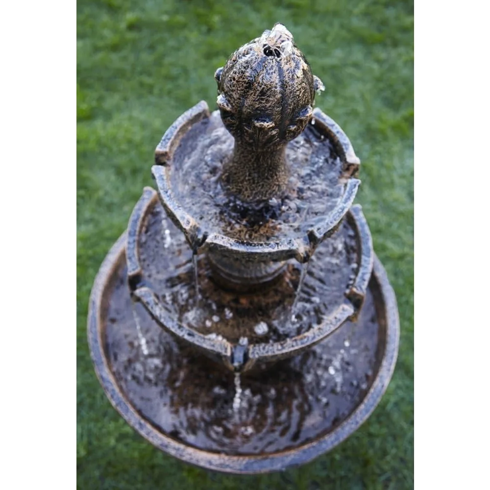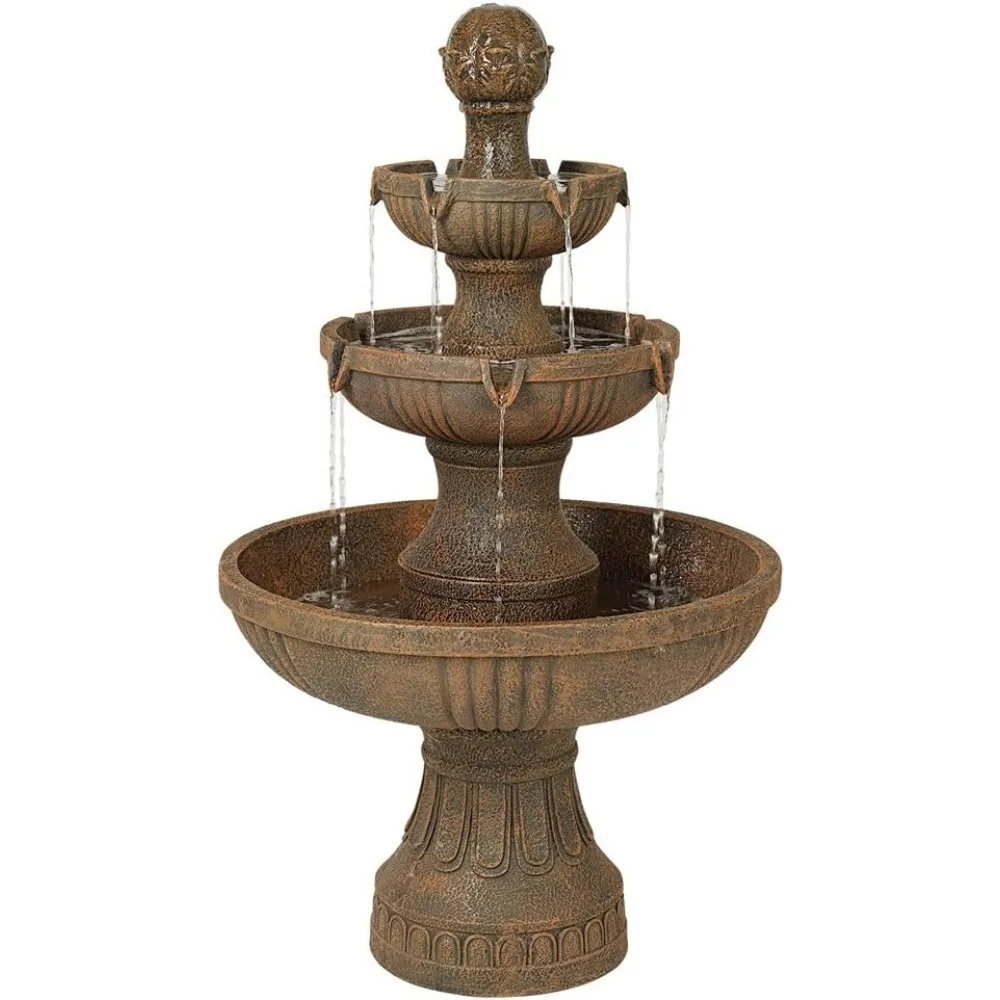 This classically styled fountain features spouted edges and a three tiered design. Water cascades gently from one level to the next, creating a pleasant look and sound. This beautiful design offers a calming influence for your outdoor spaces.