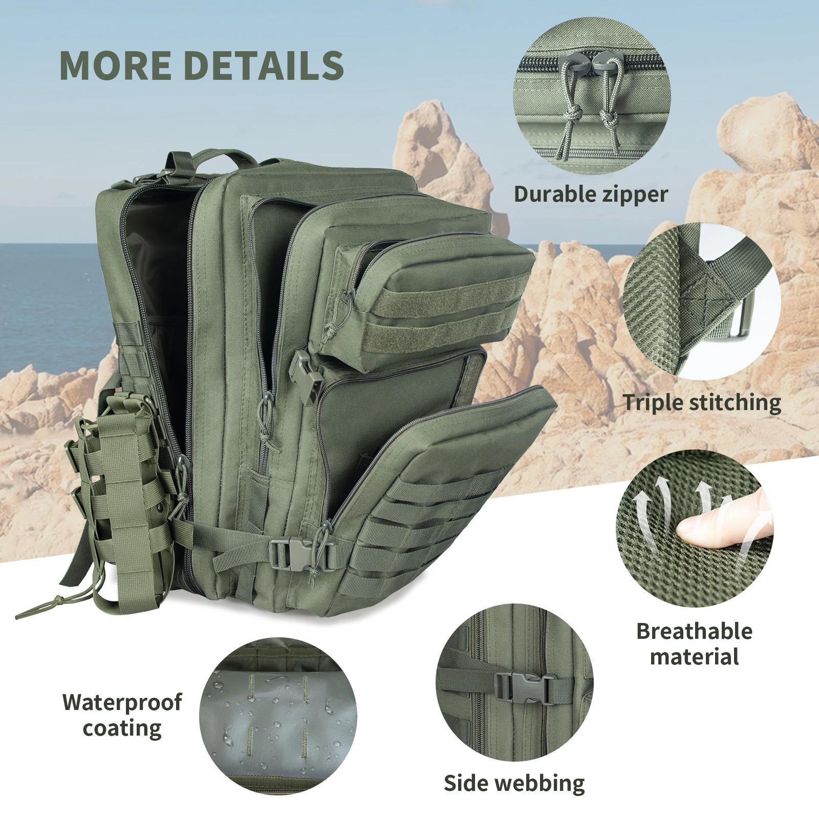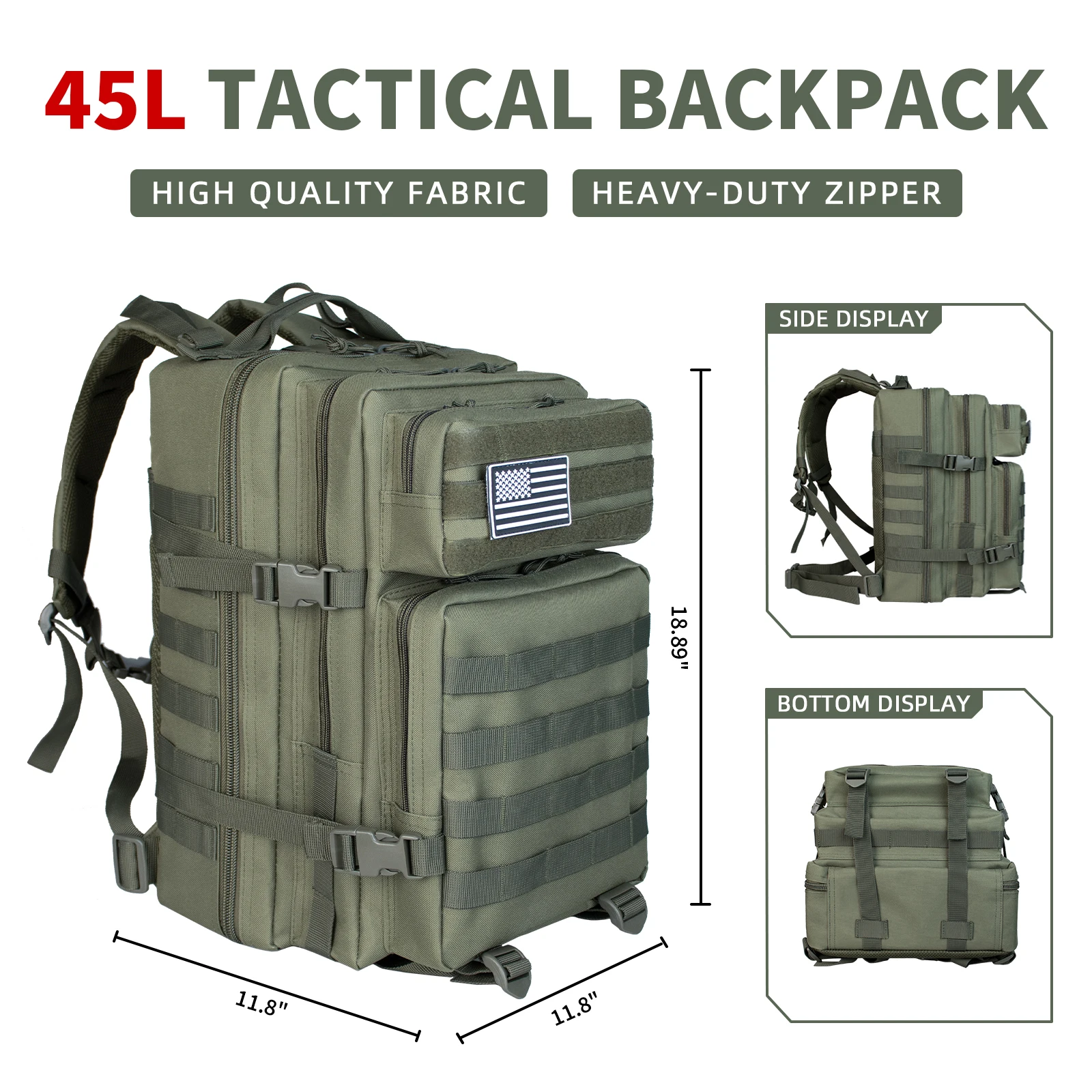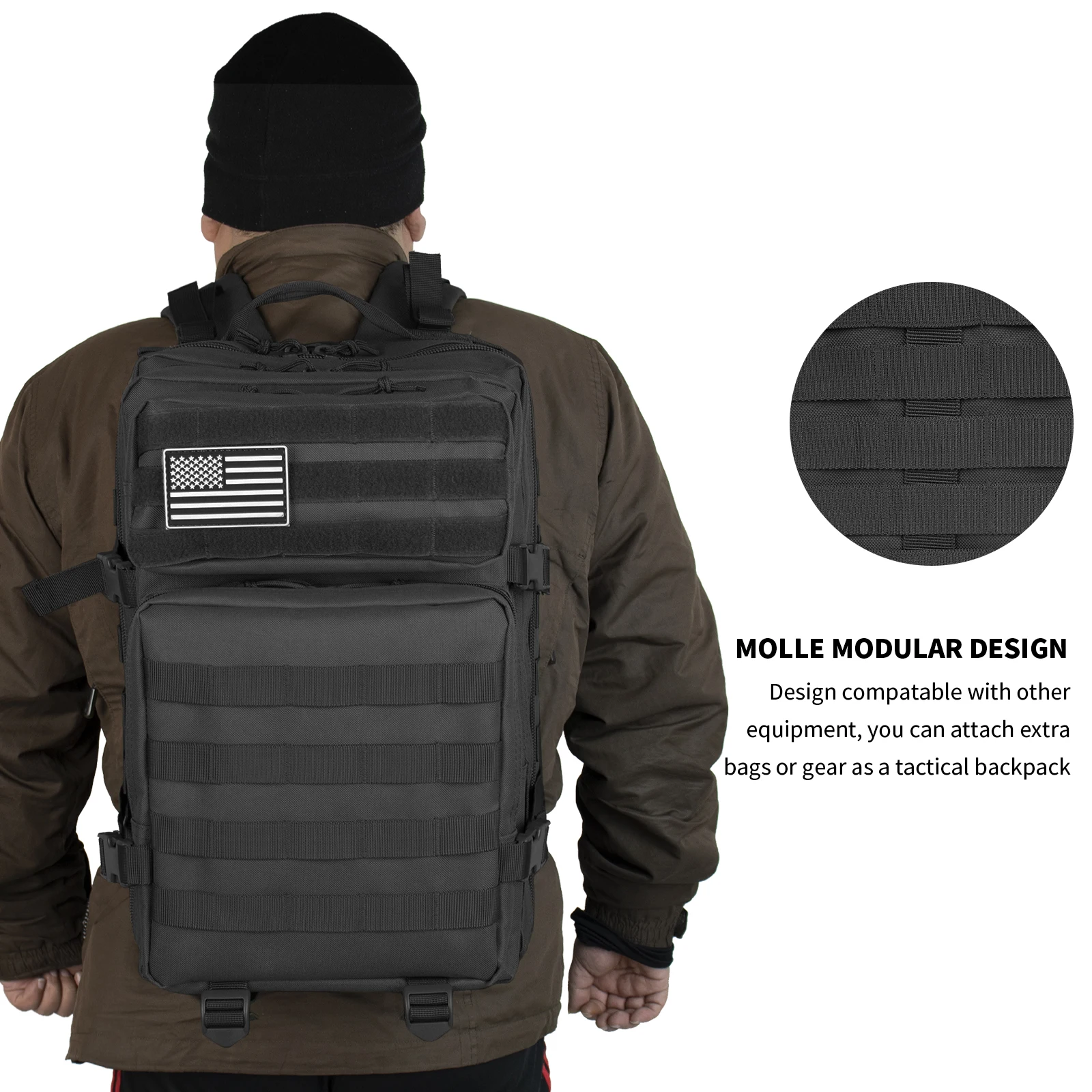 45L Large Tactical Backpack For Men Military Army Assault Pack Highland Backpacks, Molle Daypack 3 Day Bug Out Bag Hiking Campin