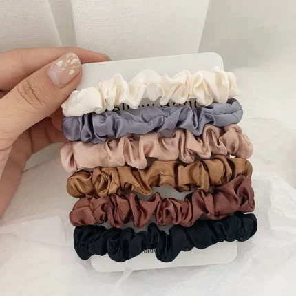 6Pcs/Set Woman Fashion Silk Satin Scrunchies Solid Color Hair Rope Ponytail Holder Elastic Hair Bands Hair Ties Hair Accessories