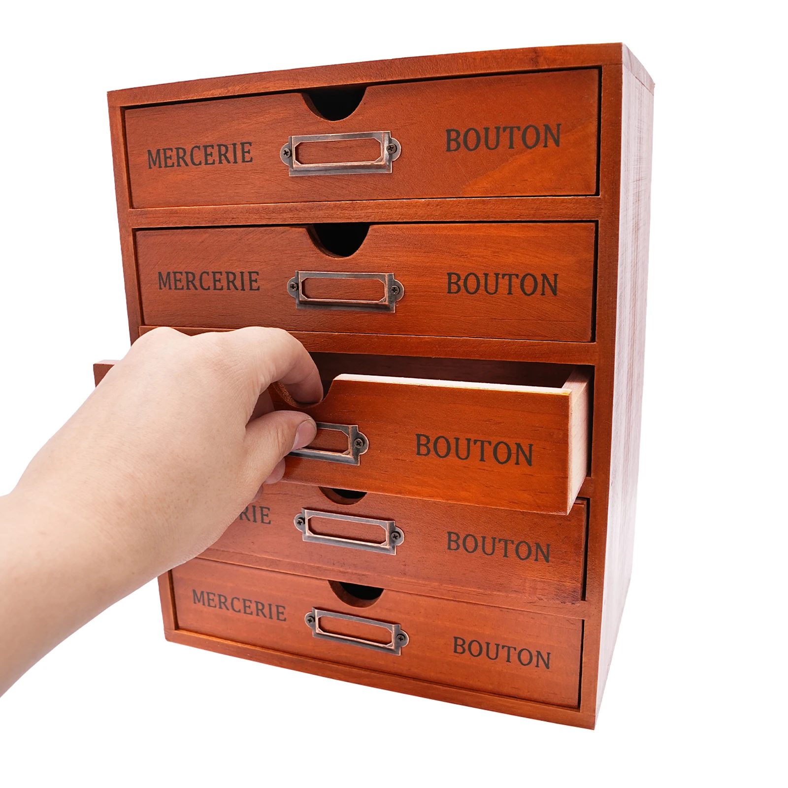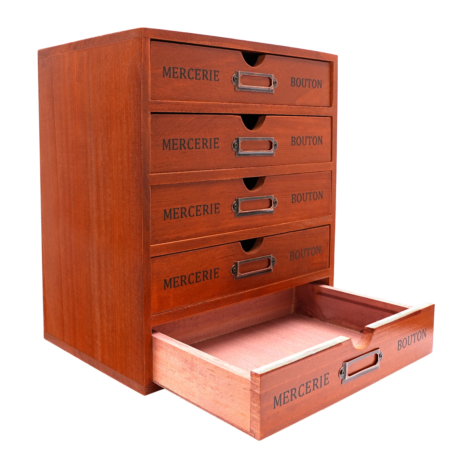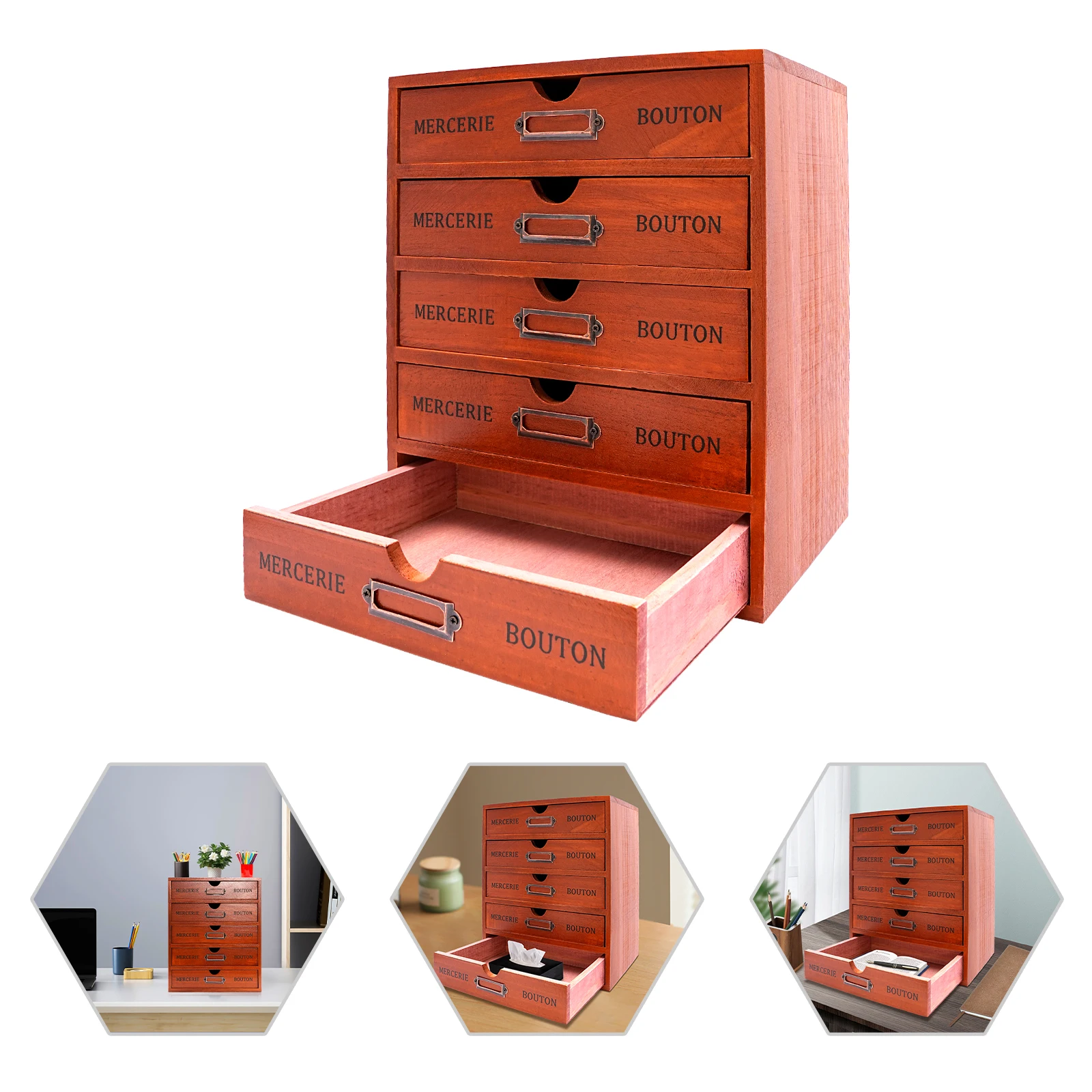 Crafted from high-quality wood, this desk organizer brings order to your workspace while infusing it with a touch of classic elegance. Each drawer is meticulously constructed to ensure smooth operation and durability, making it ideal for organizing stationery, documents, or small accessories in both home and office environments.