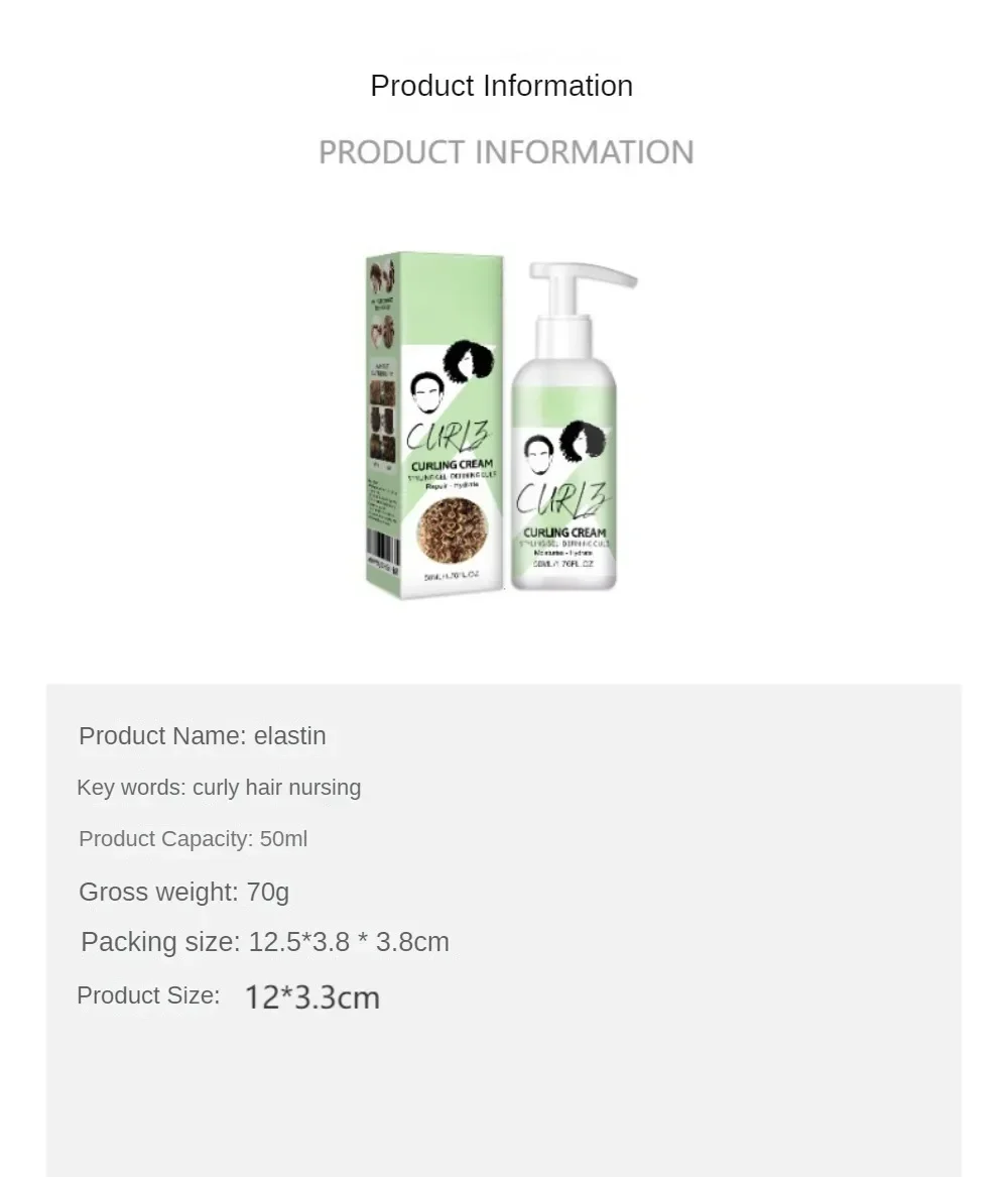 The 50ml Hair Curling Cream Anti-Frizz Bouncy Resilient Enhancer Styling Lotion is a specialized hair care product designed to enhance your natural curls, prevent frizz, and provide moisture and resilience to your hair. Whether you have curly, wavy, or frizz-prone hair, this styling lotion can help you achieve a more polished and defined look while keeping your hair healthy.