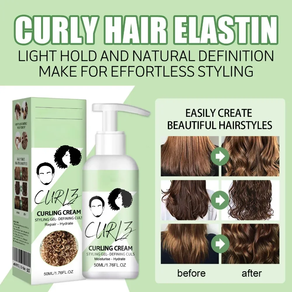 50ml Hair Curling Cream Anti-Frizz Bouncy Resilient Enhancer Styling Lotion Prevent Hair Breakage Smooth Moisturizing Hair Care