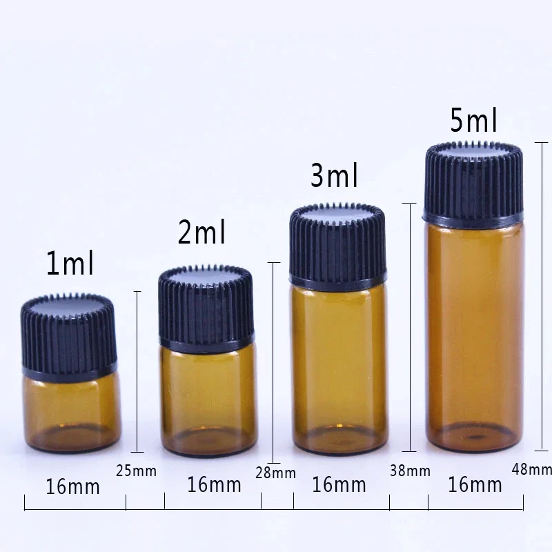 50pcs 1ml 2ml 3ml 5ml mini Amber Glass Vials small sample Oil Bottles with Orifice Reducer Essential cosmetic containers