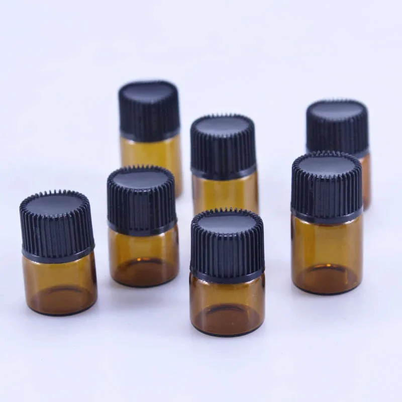 Home Store Vitamins and supplements 50pcs 1ml 2ml 3ml 5ml mini Amber Glass Vials small sample Oil Bottles with Orifice Reducer Essential cosmetic containers