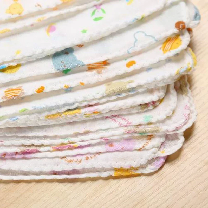 10Pcs Baby Washcloths Set Cute Cartoon Print Double Layer Gauze Infant Face Towel Reusable Wipes Absorbent Burp Cloth 85DE $4.96