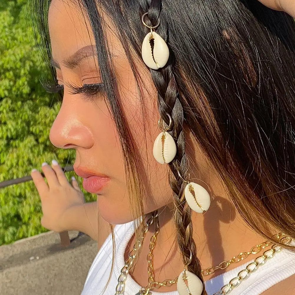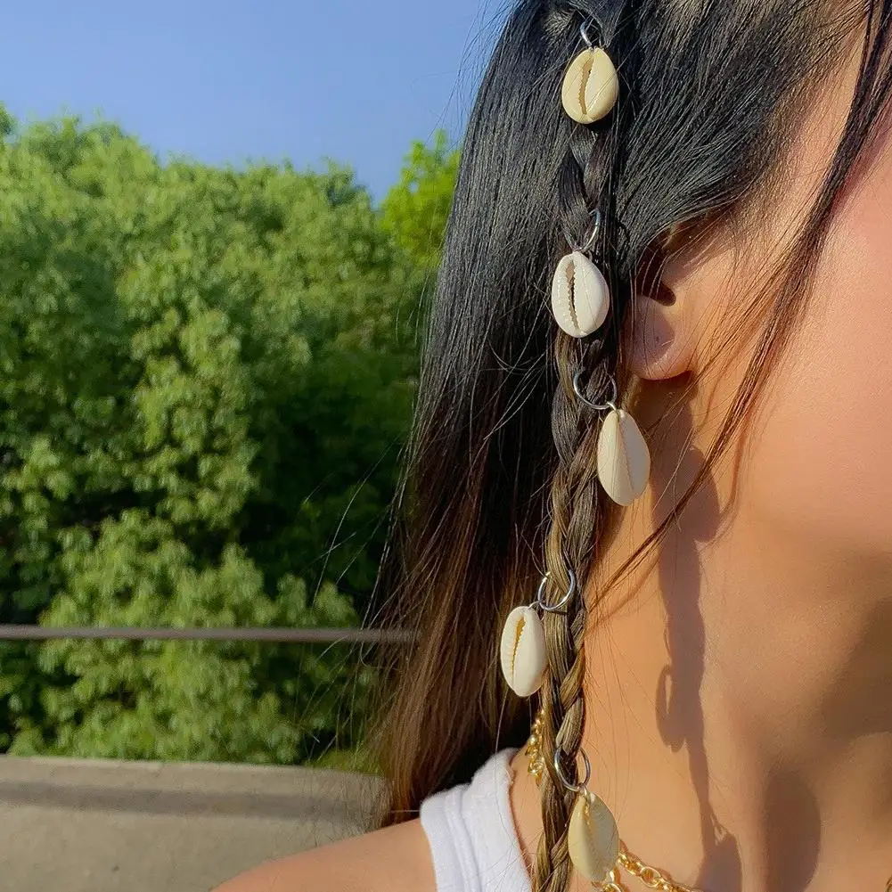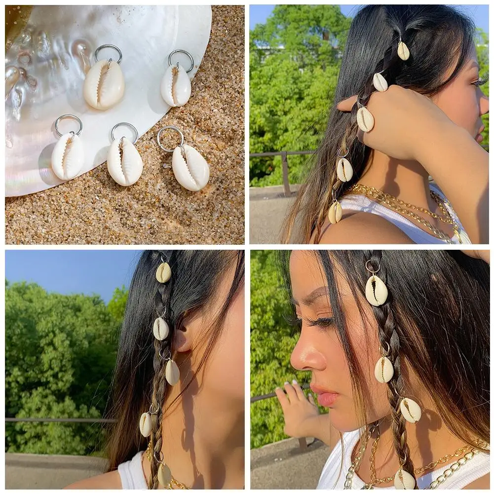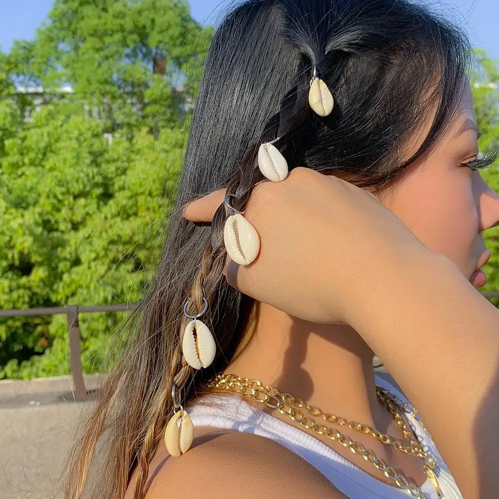 5PCS/Set Sea Shell Braided Hair Rings Bohemian Vacation Style Hair Buckle Hip Hop Dirty Braid Personalized Casual Hair Clip