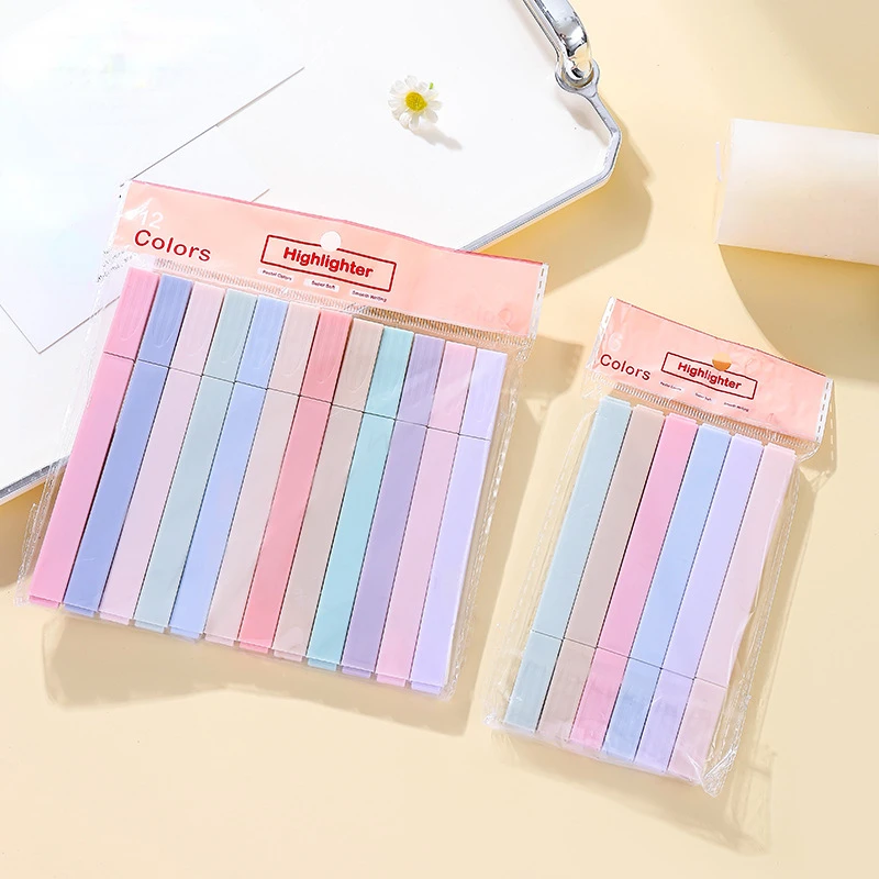 Home Store Stationery 6/12Pcs Pastel Color Highlighter Pen Double tip Marker Pens Fluorescent Pen Drawing Highlighters Cute Stationery School Supplies