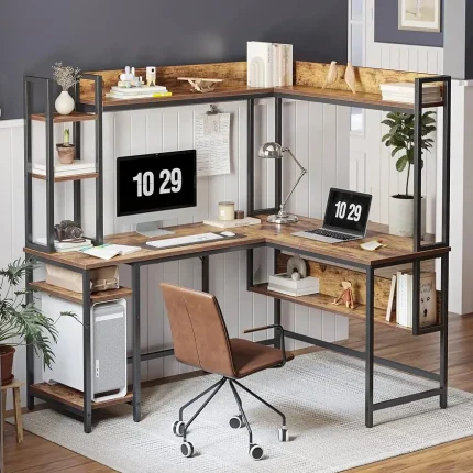 Shaped Gaming Desk with Hutch, 60" Corner Computer Desk with Storage Shelves $319.14