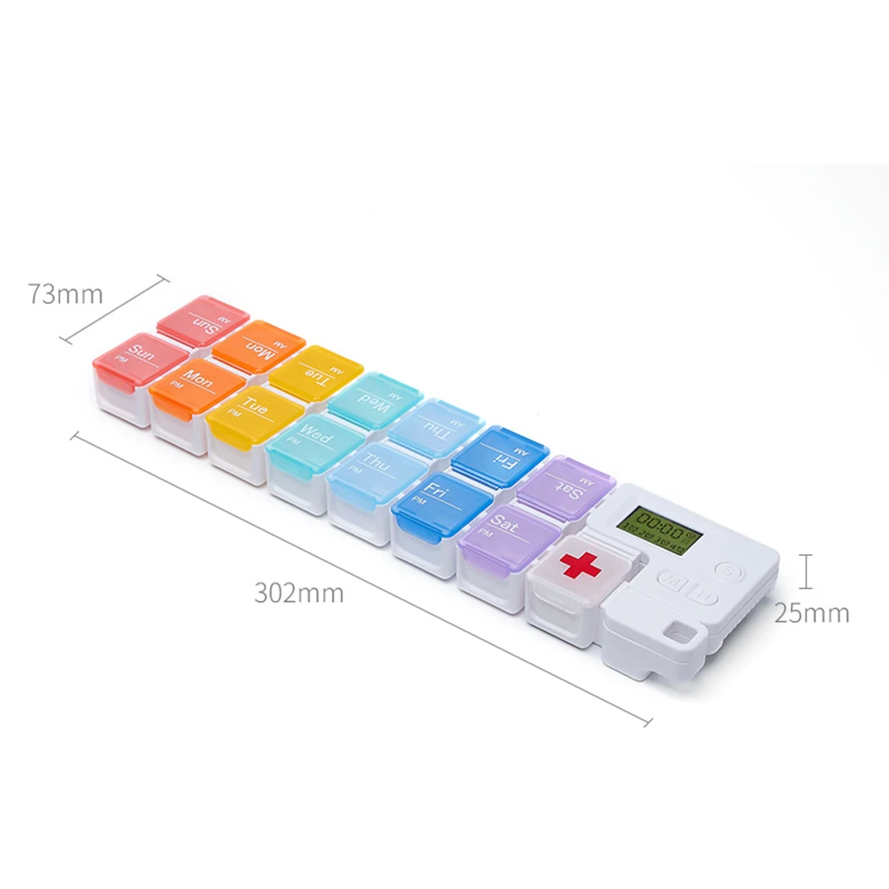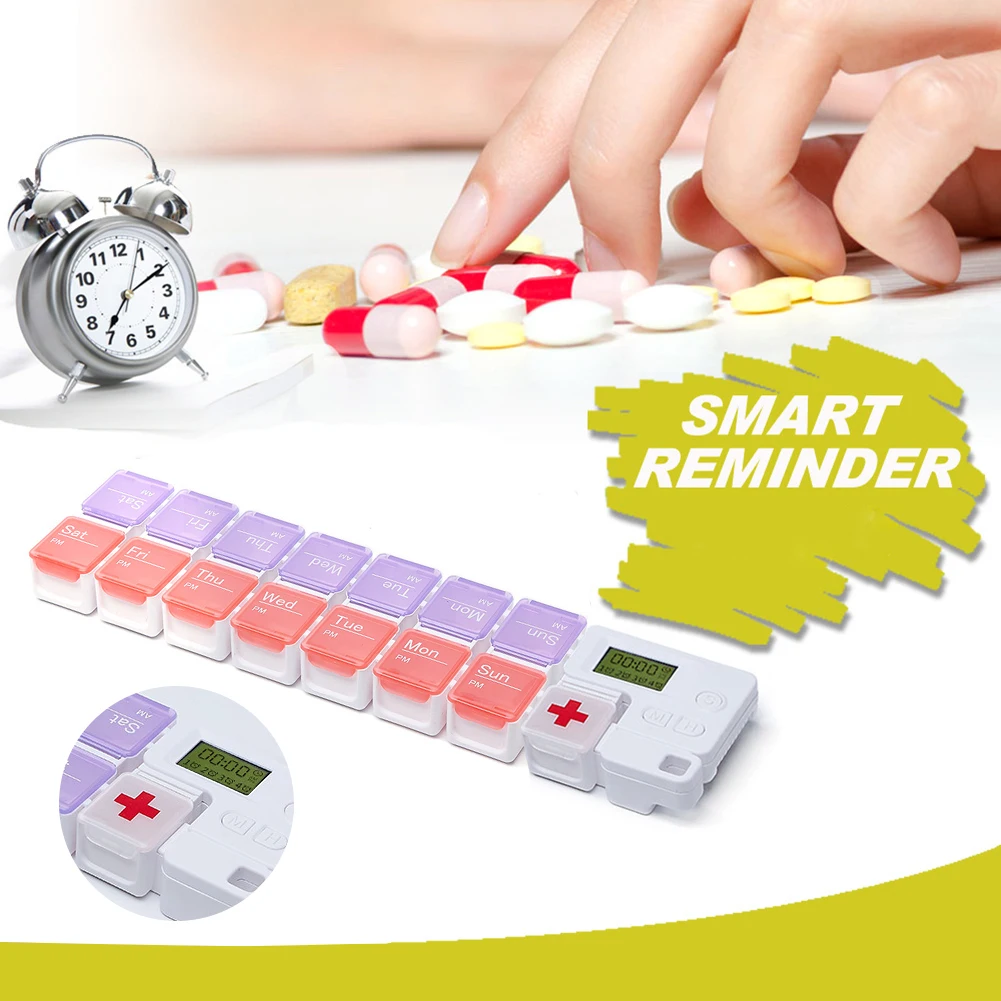 7 Day Pill Organizer with Timer Reminder Alarm Travel Pill Organizer Daily Pill Container for Pills/Vitamin/Fish Oil/Supplements Feature: