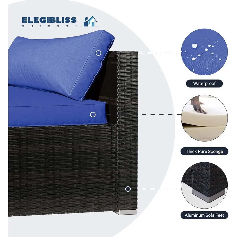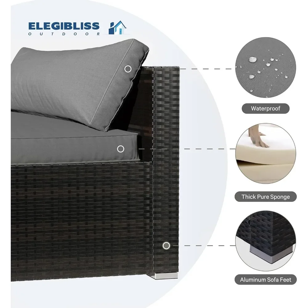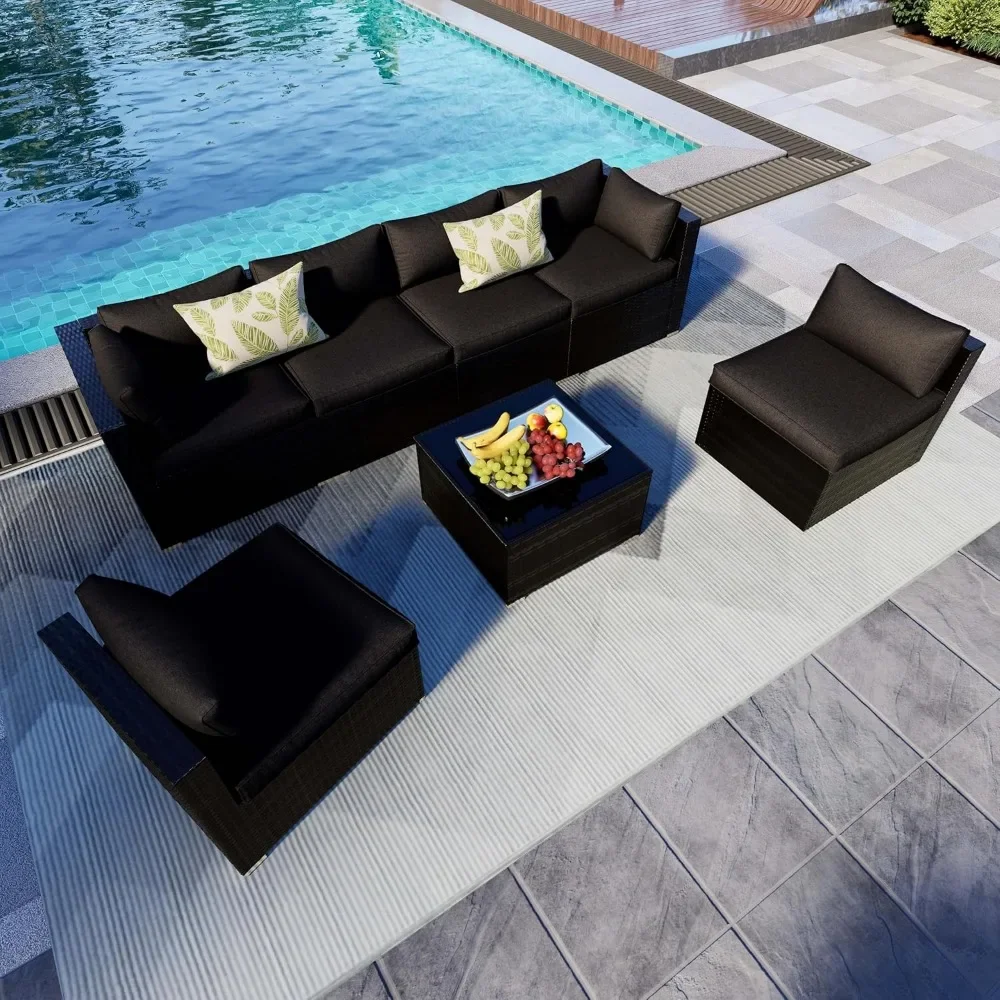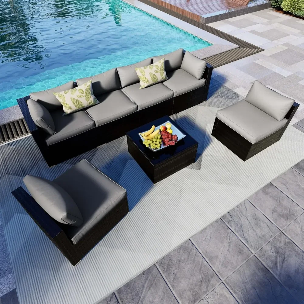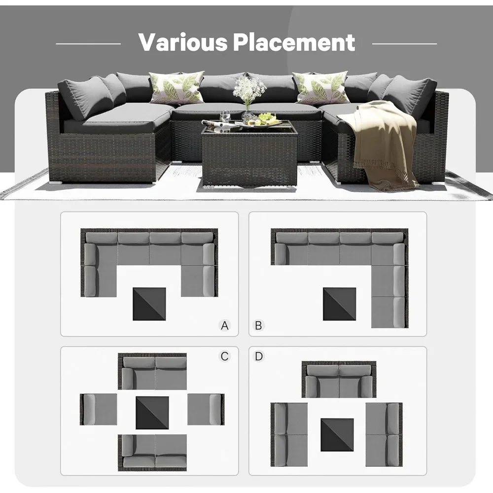 - OUTDOOR SOFA SET – The 7-piece outdoor sectional sofa features a sturdy steel frame that will never rust. Wicker is strong enough to withstand all weather changes. Thick waterproof durable cushions and tempered glass are easy to clean. Enjoy your great afternoon!