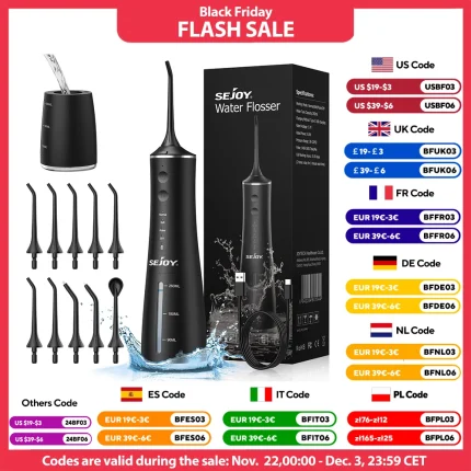 Sejoy Portable Oral Irrigator BV609 Water Flosser USB Rechargeable 10 Nozzles 4 Modle Dental Water Jet 260ml Water Tank $38.16 – $56.88