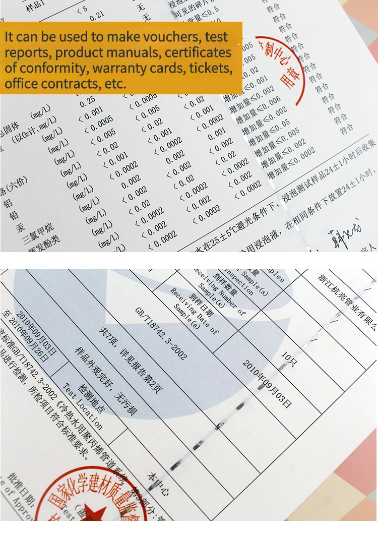 90g Watermark-free Paper Cotton Pulp Security Paper Silver Safety Thread Report Qualified Ticket Office Contract Print Paper