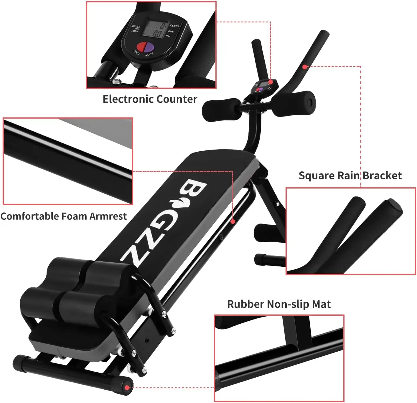 Bigzzia Adjustable Ab Exercise Bench, Abdominal Workout Machine Foldable Sit Up Bench, Full Body Exercise Equipment with LCD Monitor for Leg,Thighs,Buttocks,Rodeo,Sit-up Exercise