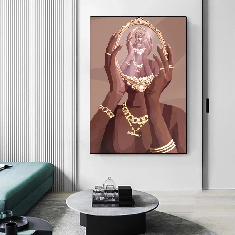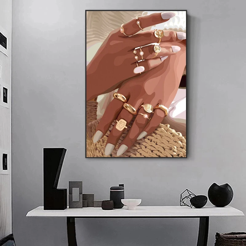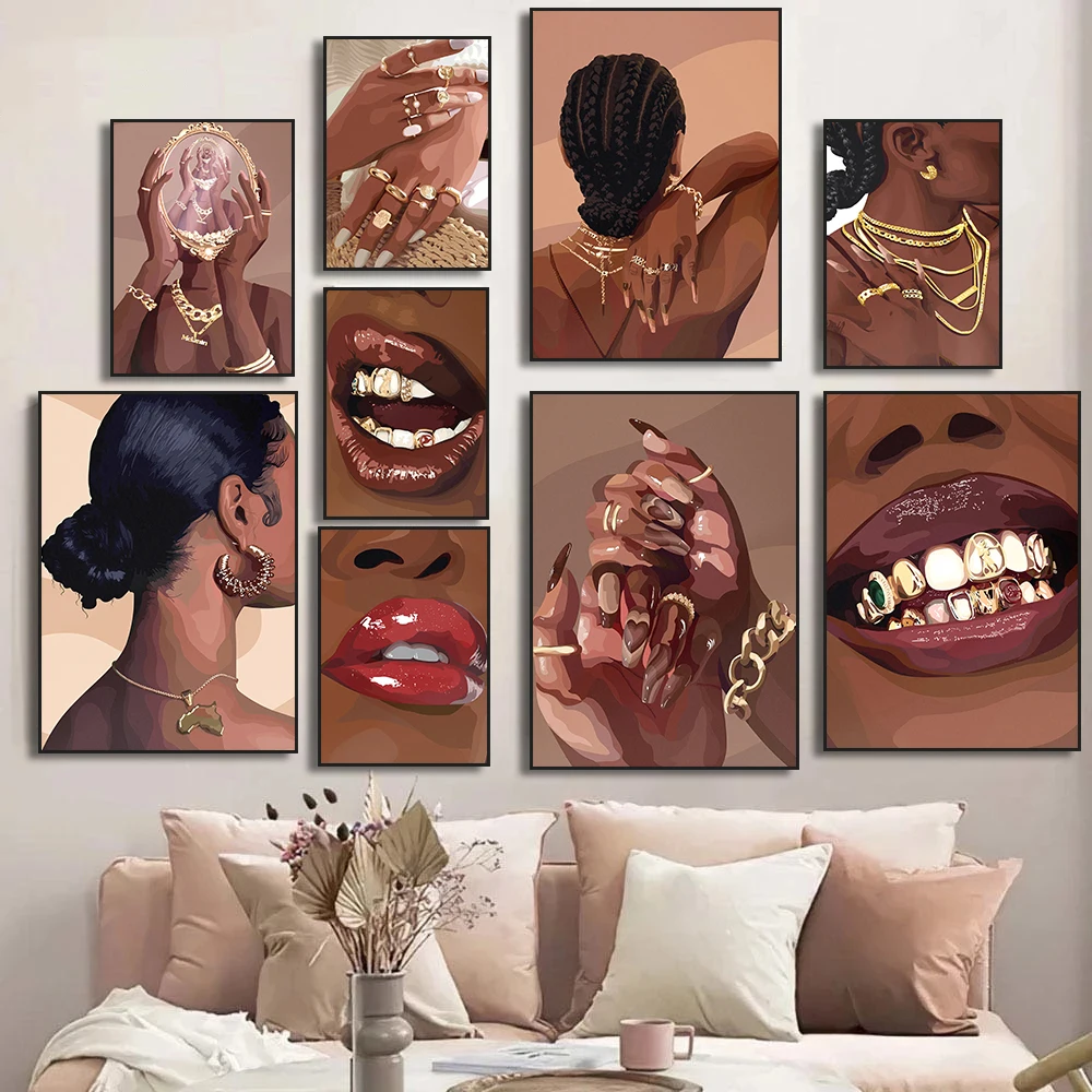 Home Store Home Decor Wall art African Black Female Portrait Nail Lips Posters and Prints Modern Figure Art Canvas Painting Wall Art Pictures Home Room Decor