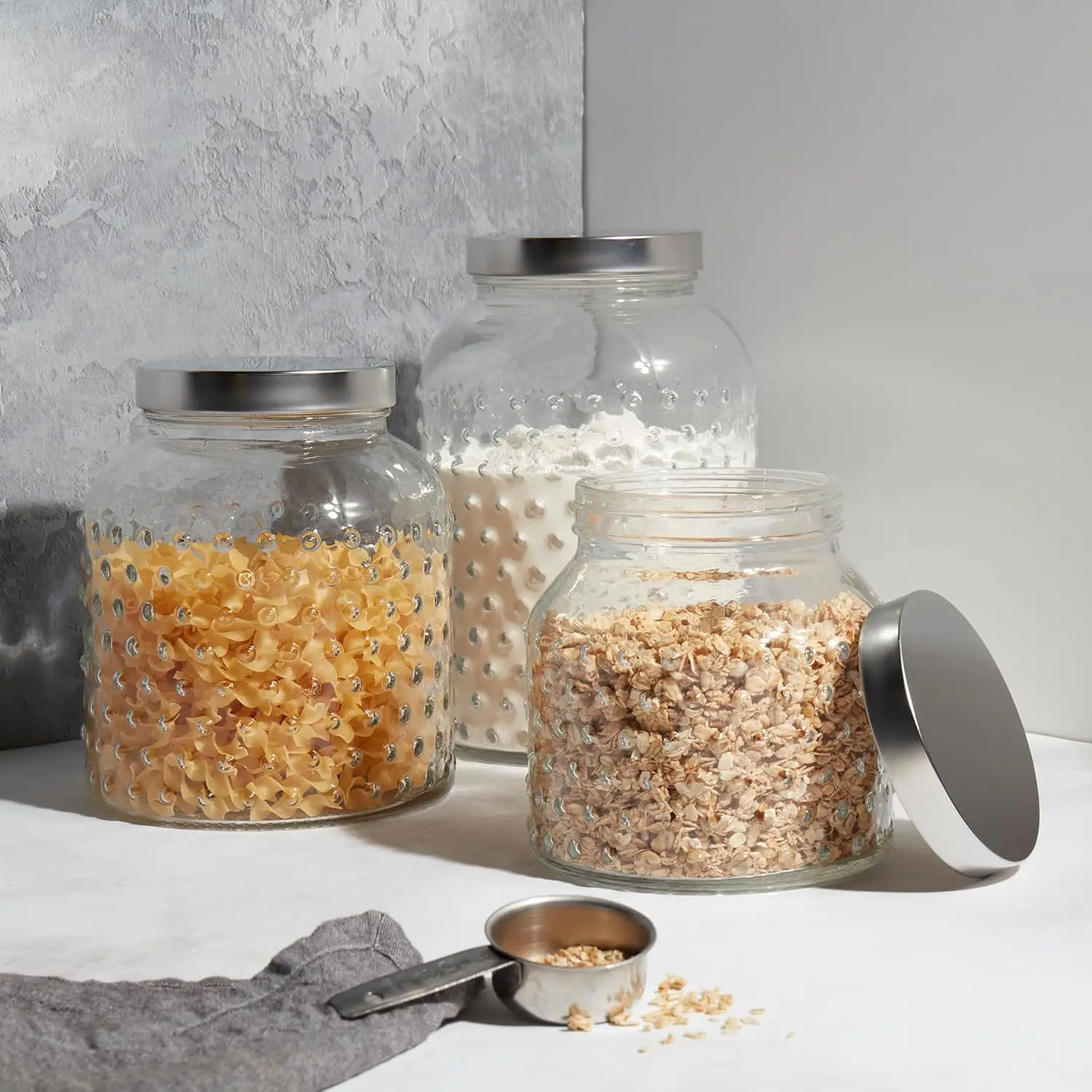 - FRESH STORAGE: Our Glass Canisters have a specially designed tight-fitting pop-up lid for quick and easy access and fresh food storage.