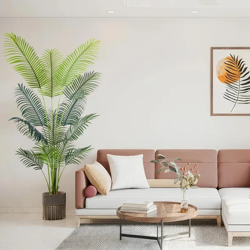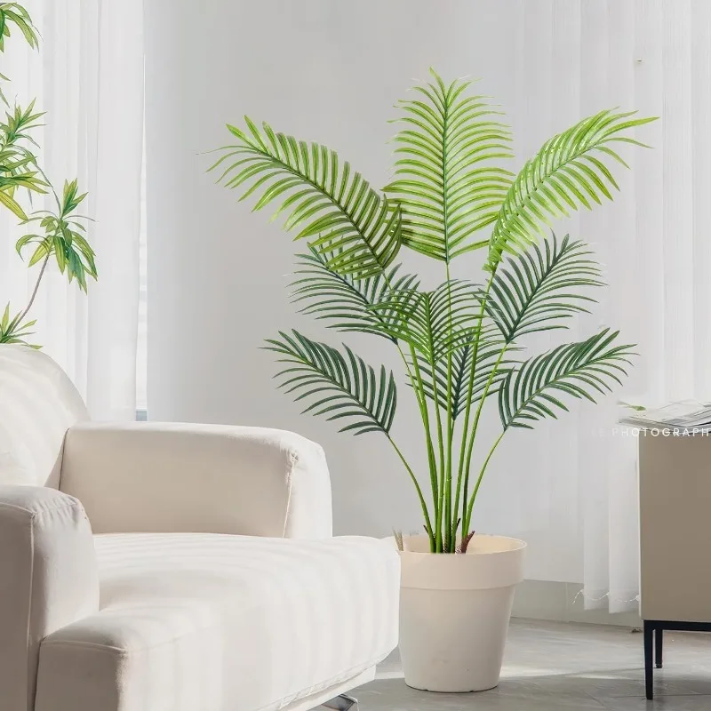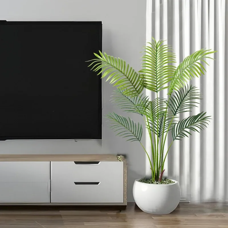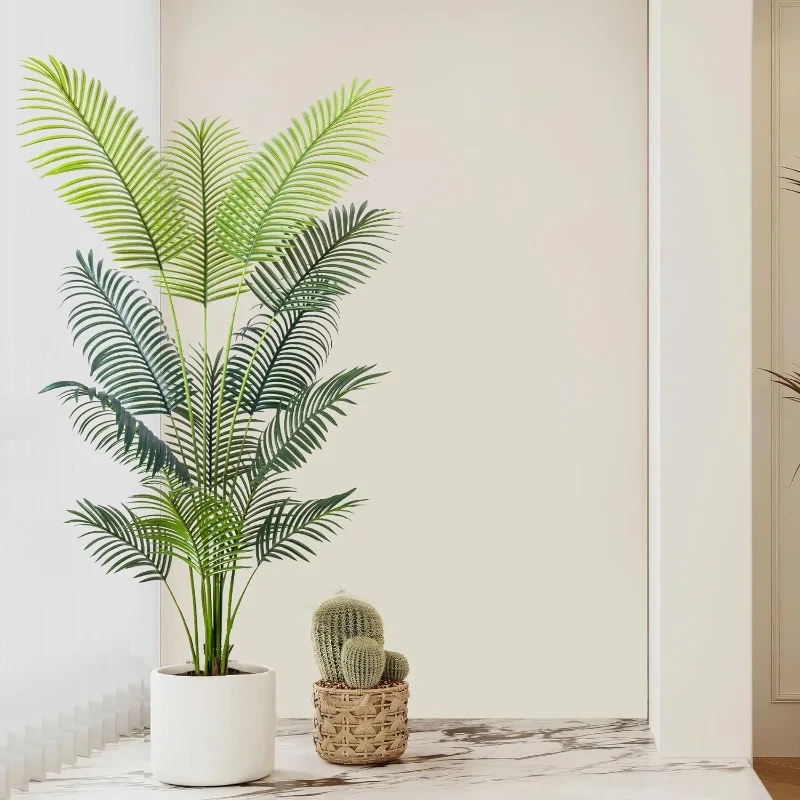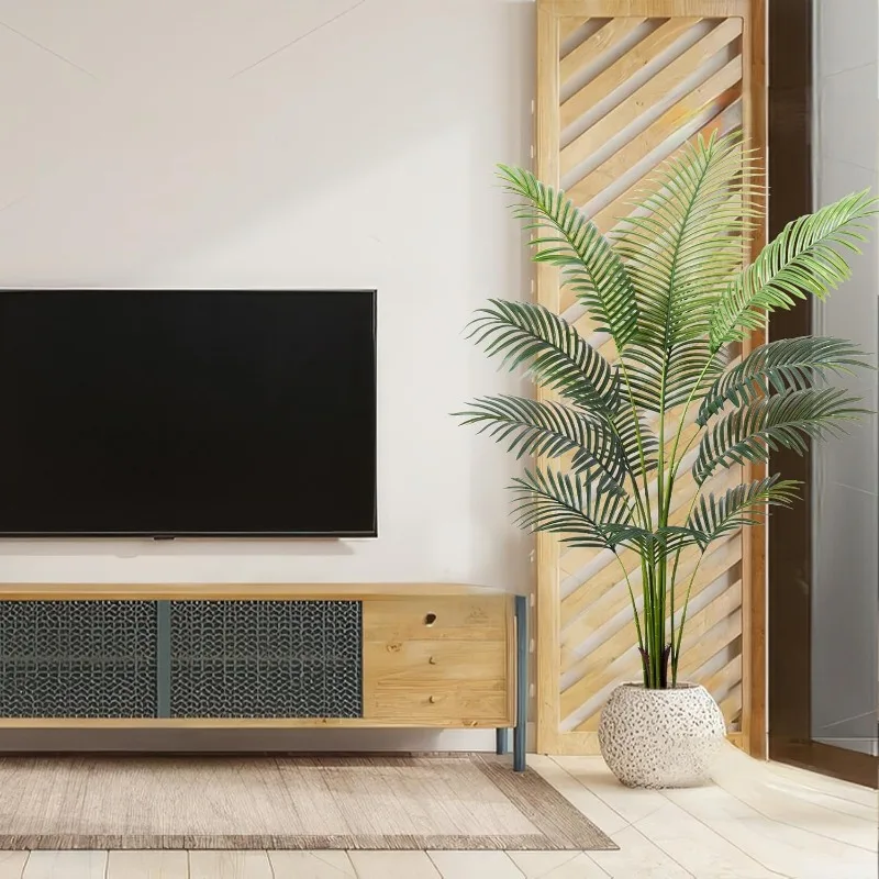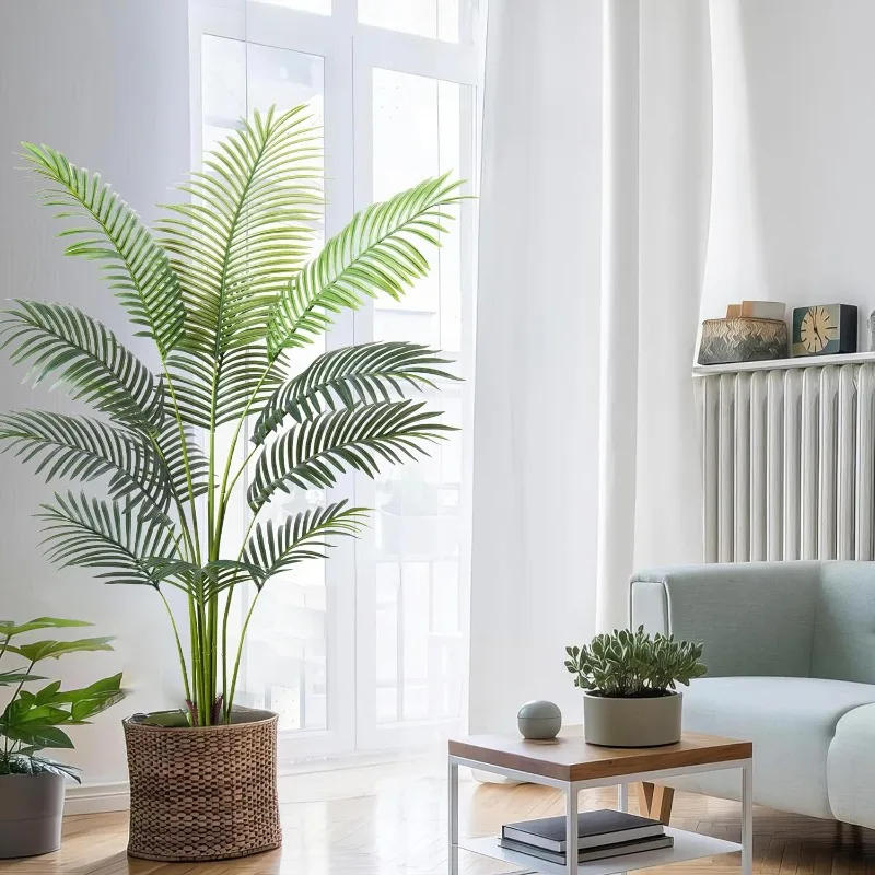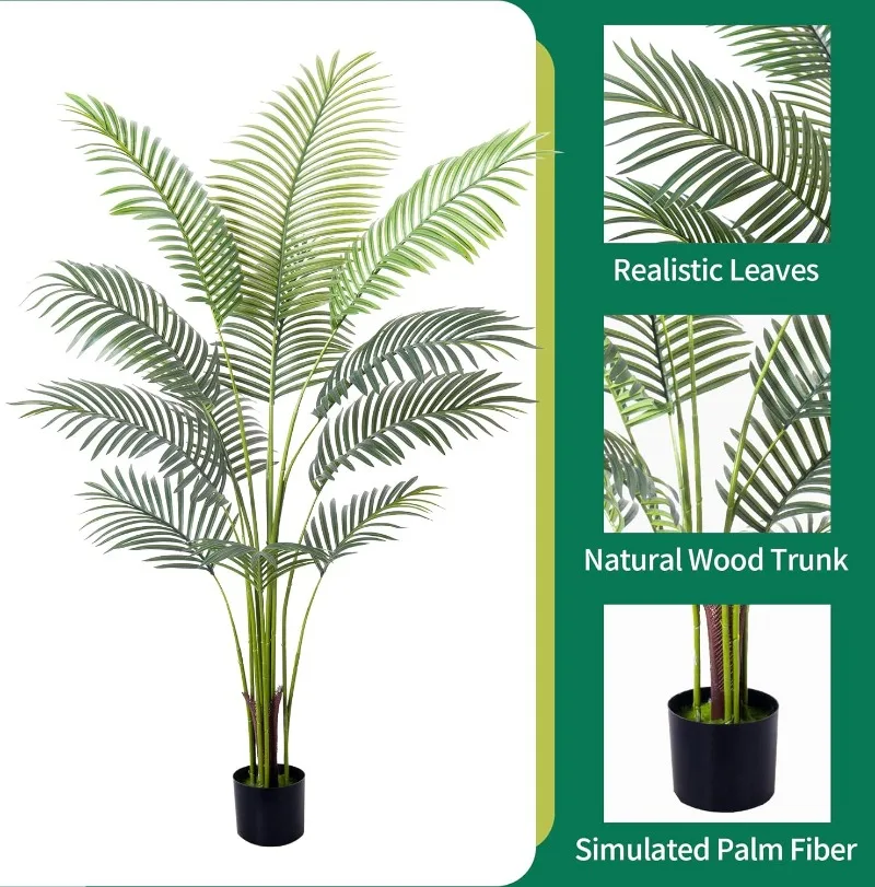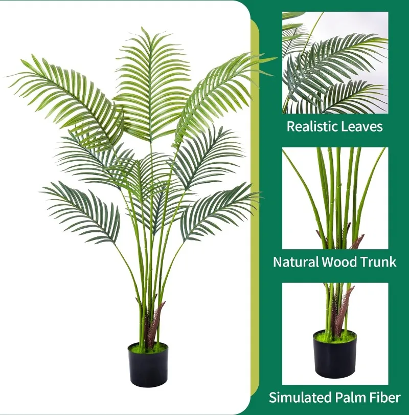 - 【Vivid Realistic Silk Trees】This artificial tree made of durable and premium polyester material features a lifelike structure and style. The Artificial Areca Palm Plant is designed according to the appearance of tropical palm plants; each leaf has a natural and bright luster and a real touch. Our artificial plants are outfitted with sturdy inner metal wires; you can adjust the leaves and branches to different angles to shape the most charming look.