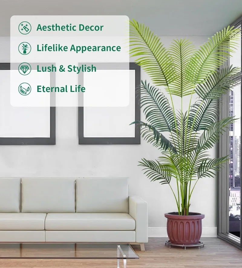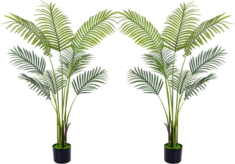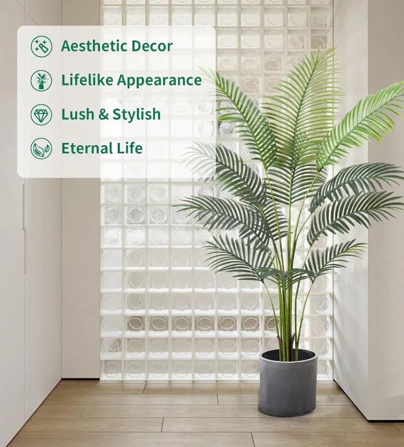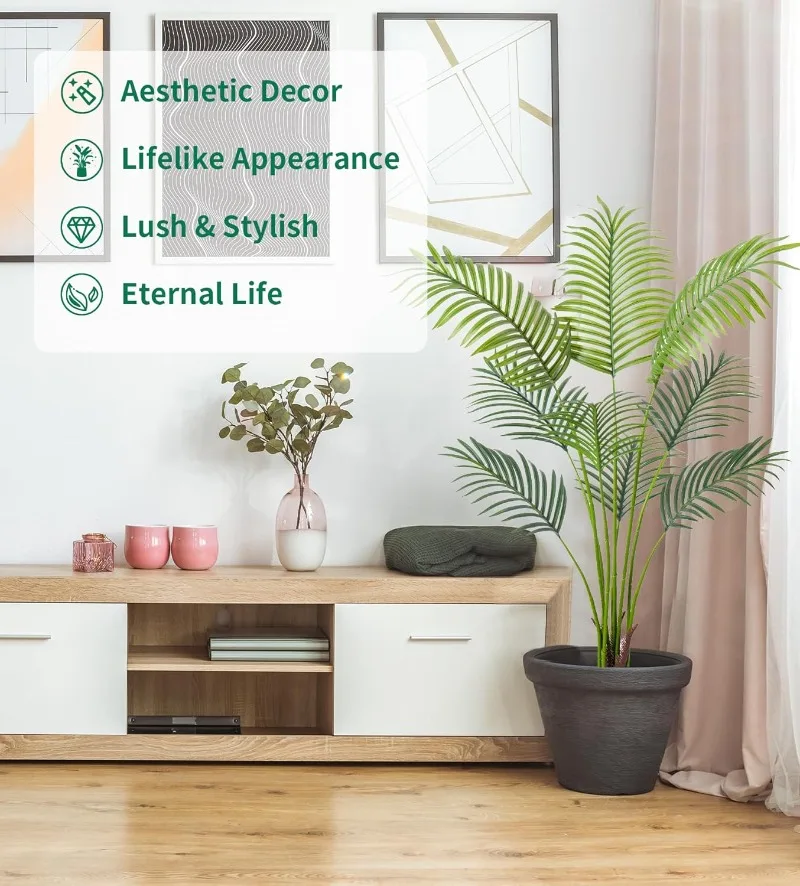 - 【Ideal Artificial Trees for Indoor Outdoor Decor】With simple and elegant style, This floor areca palm trees can be perfectly matched with any theme to become a beautiful landscape. Putting a tall artificial plant in your home, office, living room, bedroom, balcony, beside sofa or corner, not only create a leisurely and cozy atmosphere but also frees your eyes.