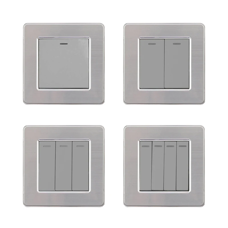 Avoir Wall Light Switch Stainless Steel Brushed Gray Panel Push Button Switches 1 2 3 4 Gang 1 2 Way Home Improvement AC110-250V