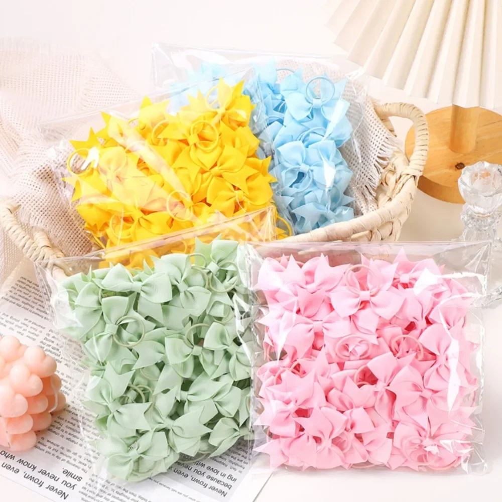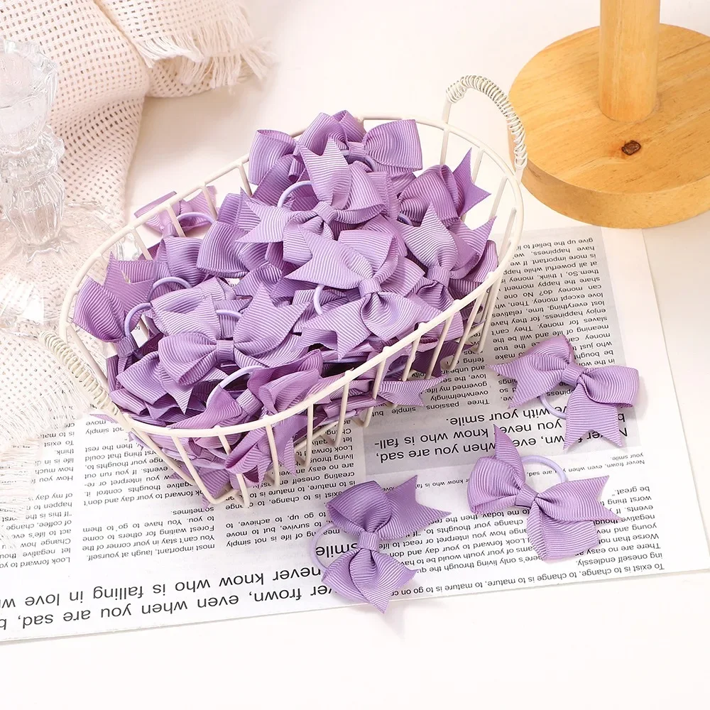 BABY BOWS 10Pcs New Color Grosgrain Ribbon Bows Elastic Hairties Hair Bands Girls Spring Head Rope Hair Accessories wholesale