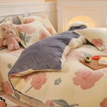 Winter Flannel Coral Fleece Warm Thick Duvet Cover Single Double Queen King Size Quilt cover Double Sided Velvet Bedding Set