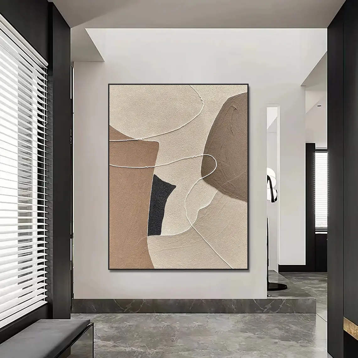 Beige Brown Wabi Sabi Wall Art Abstract Oil Painting On Canvas Neutral Large Wall Decor Boho Textured Entrance Home Decoration
