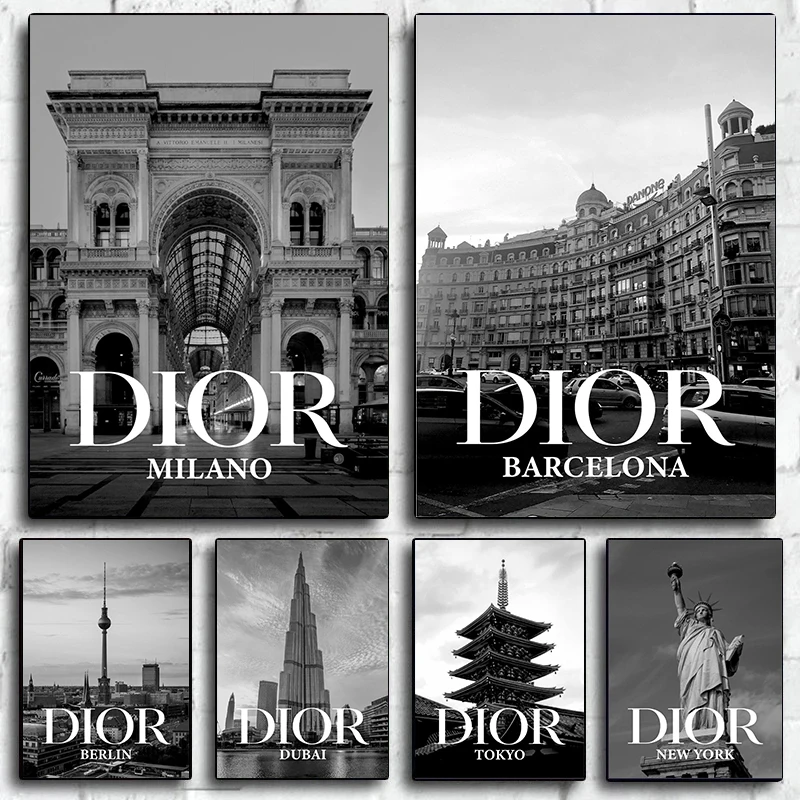 Home Store Home Decor Decorative items Black and White City Architecture Eiffel Tower Statue of Liberty Picture Travel Famous Architecture Canvas Painting Home Decor