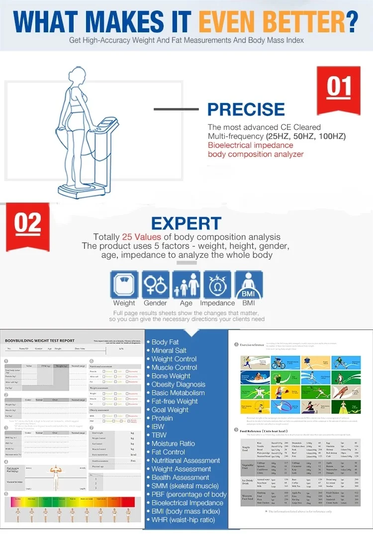 Bmi Body Analyzer Machine Professional Health Care Weight Test Body Fat Composition with WIFI Blueteeth And HP Color Printer