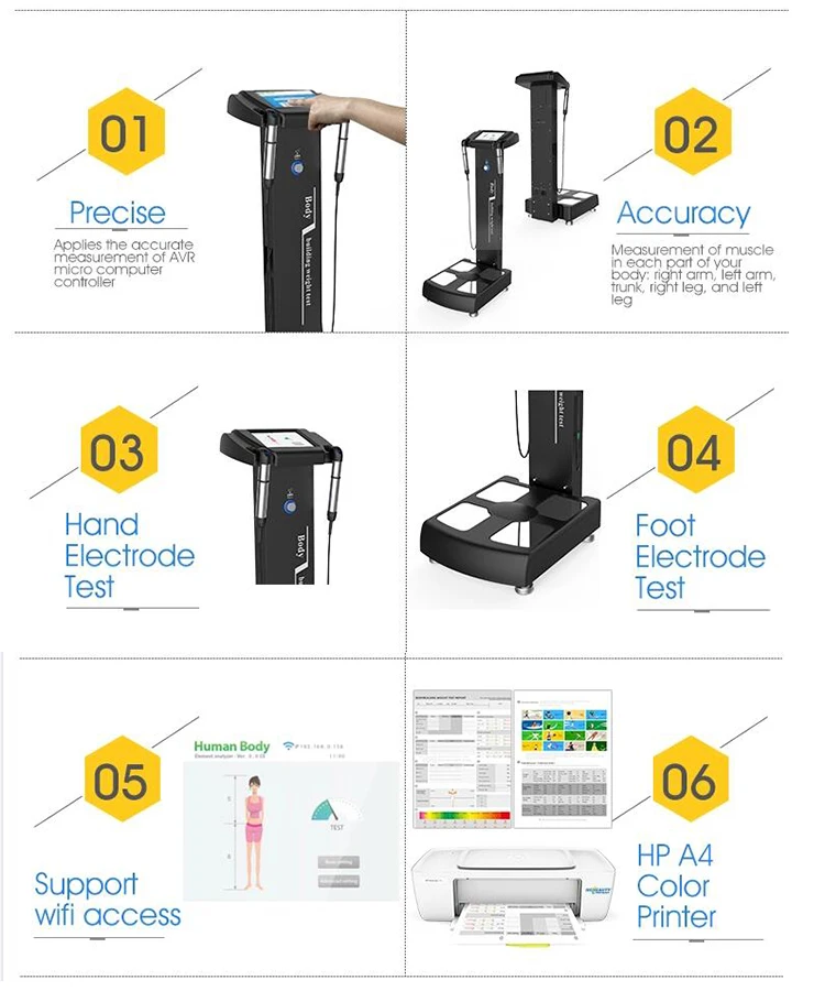 Home Health and Wellness Bmi Body Analyzer Machine Professional Health Care Weight Test Fat Composition with WIFI Blueteeth And HP Color Printer