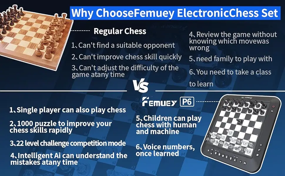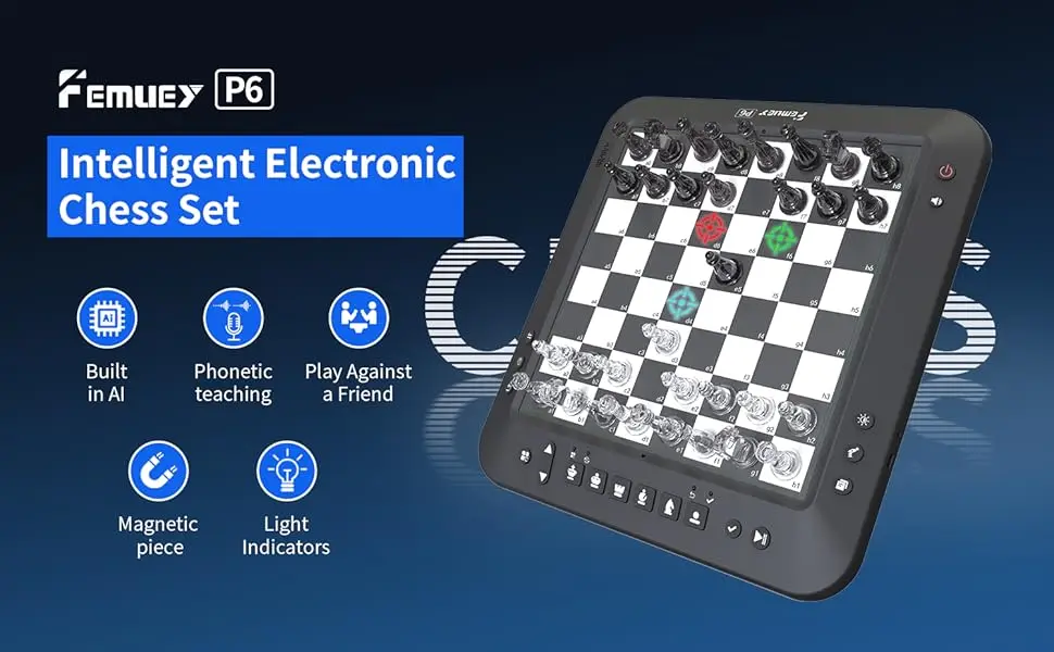 P6 Chess Computer – the ultimate chess companion for enthusiasts of all skill levels. This advanced electronic chess set is designed to improve your game and provide an immersive playing experience. Imagine how cool having an intelligent electronic chess board, like a coach training you, play against you.