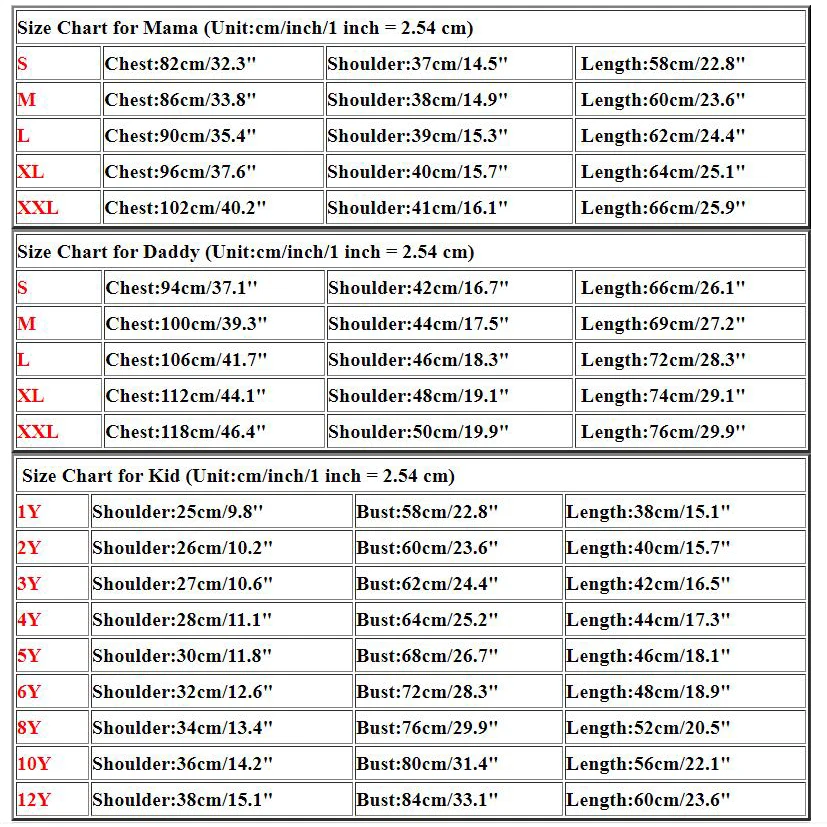 | Size Chart for Mommy (Unit:cm/inch/1 inch = 2.54 cm) | |||