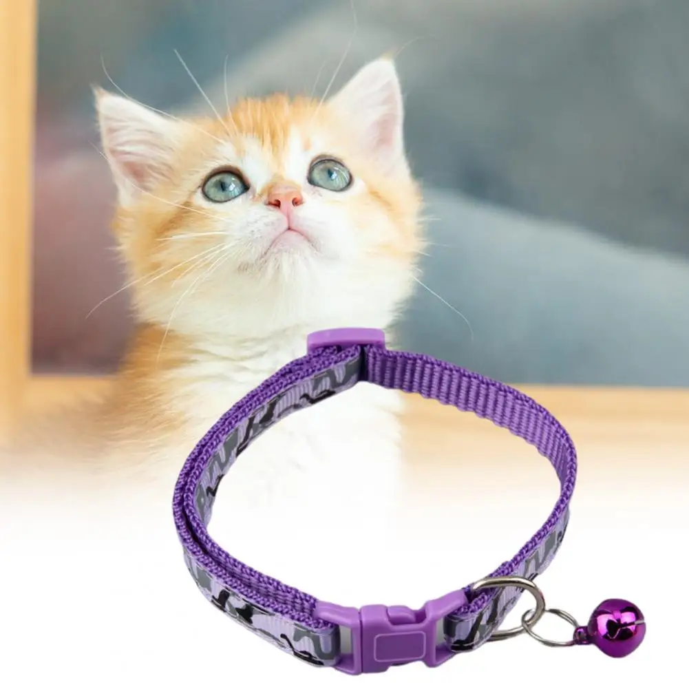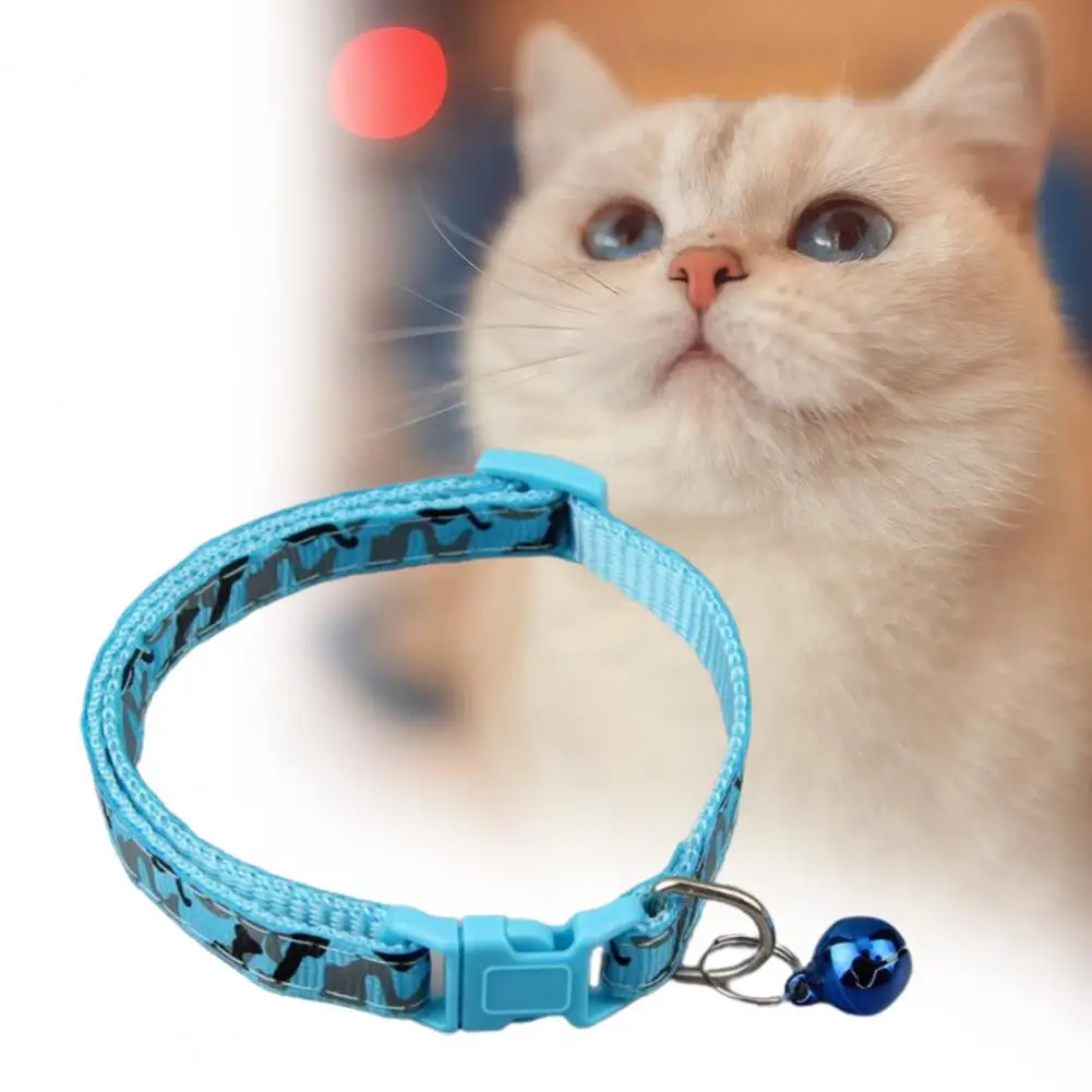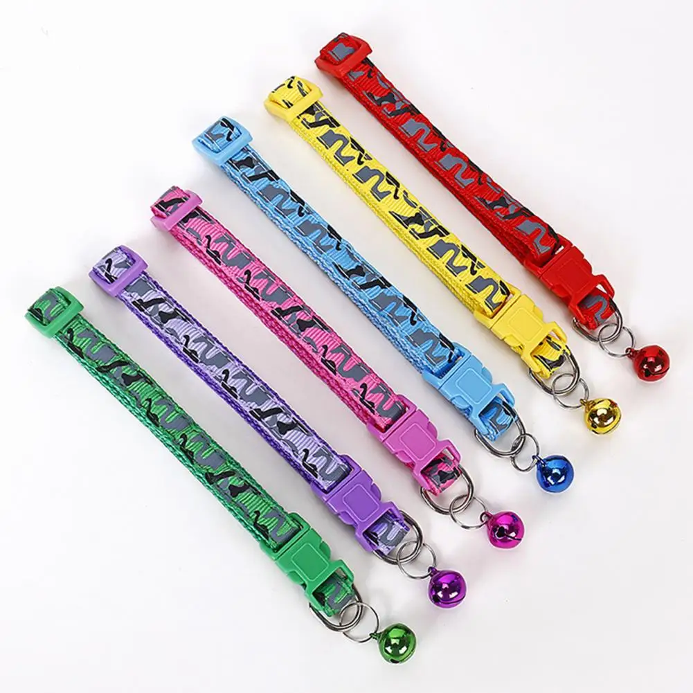 Colorful Pet Collar with Cute Bell Adjustable Dog Cat Collar for Puppies Kittens Stylish Camouflage Pattern DIY Pet Accessories