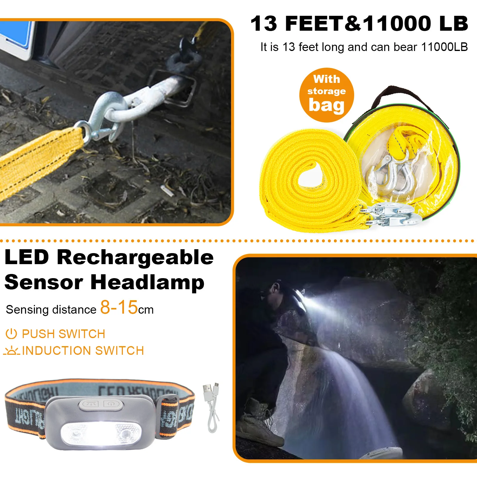 ★[ALWAYS BE READY] The magnetic road flare can provide plenty of light in case you need to check the engine or replace oil, coolant, or battery. When you need to fix your car, the car tire repair tool, LED sensor headlamp, multi-tool pliers, and wiring harness tape will start working. Breakthrough windows with the safety hammer, secure your vehicle with the tow rope, and be seen with the reflective triangle and safety vest. Other gadgets can also be a good idea in an emergency.