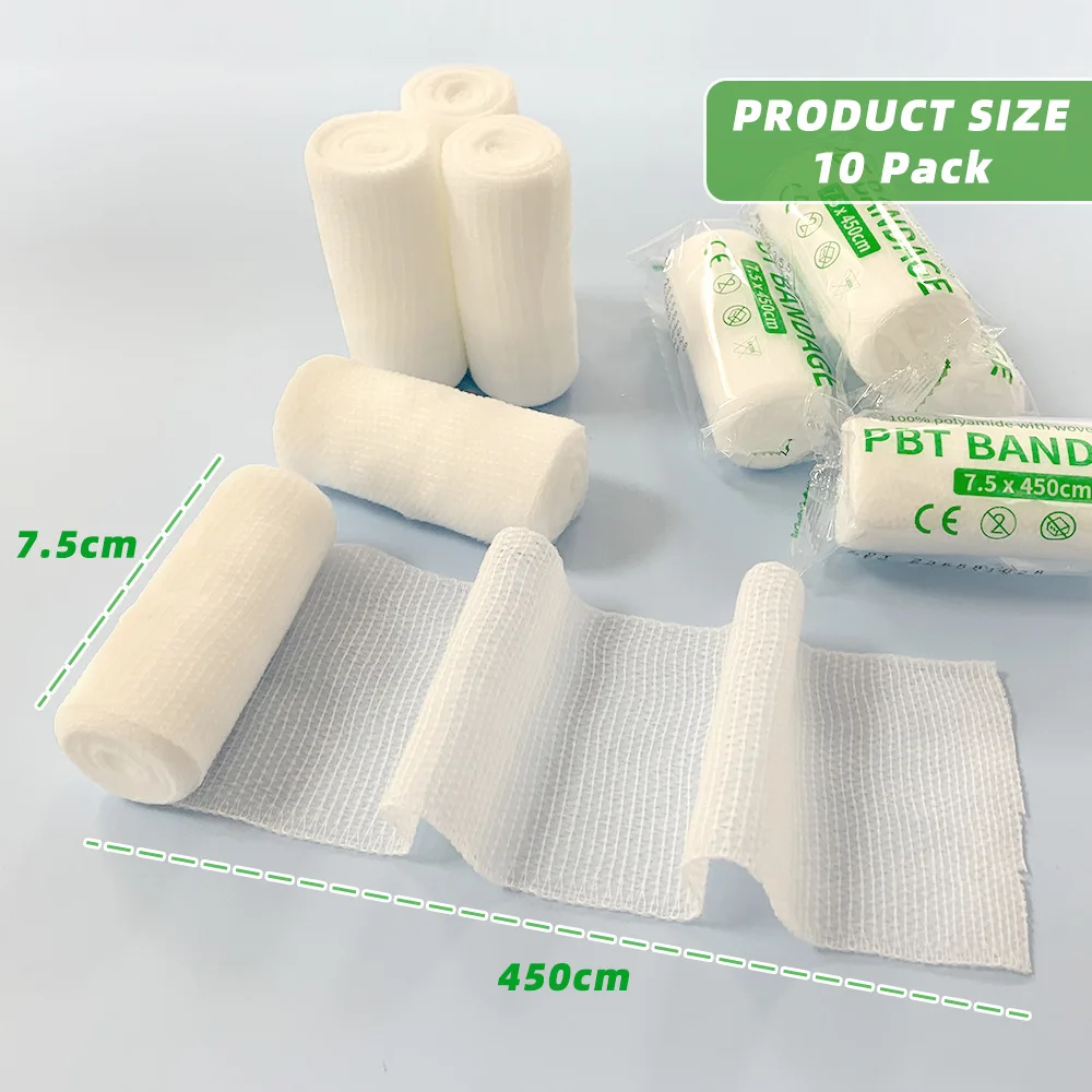 CARBOU 10pcs/lot 7.5cm X 4.5m Cotton PBT Elastic Bandage Medical Supply Conforming First Aid Gauze Wound Dressing Emergency Care