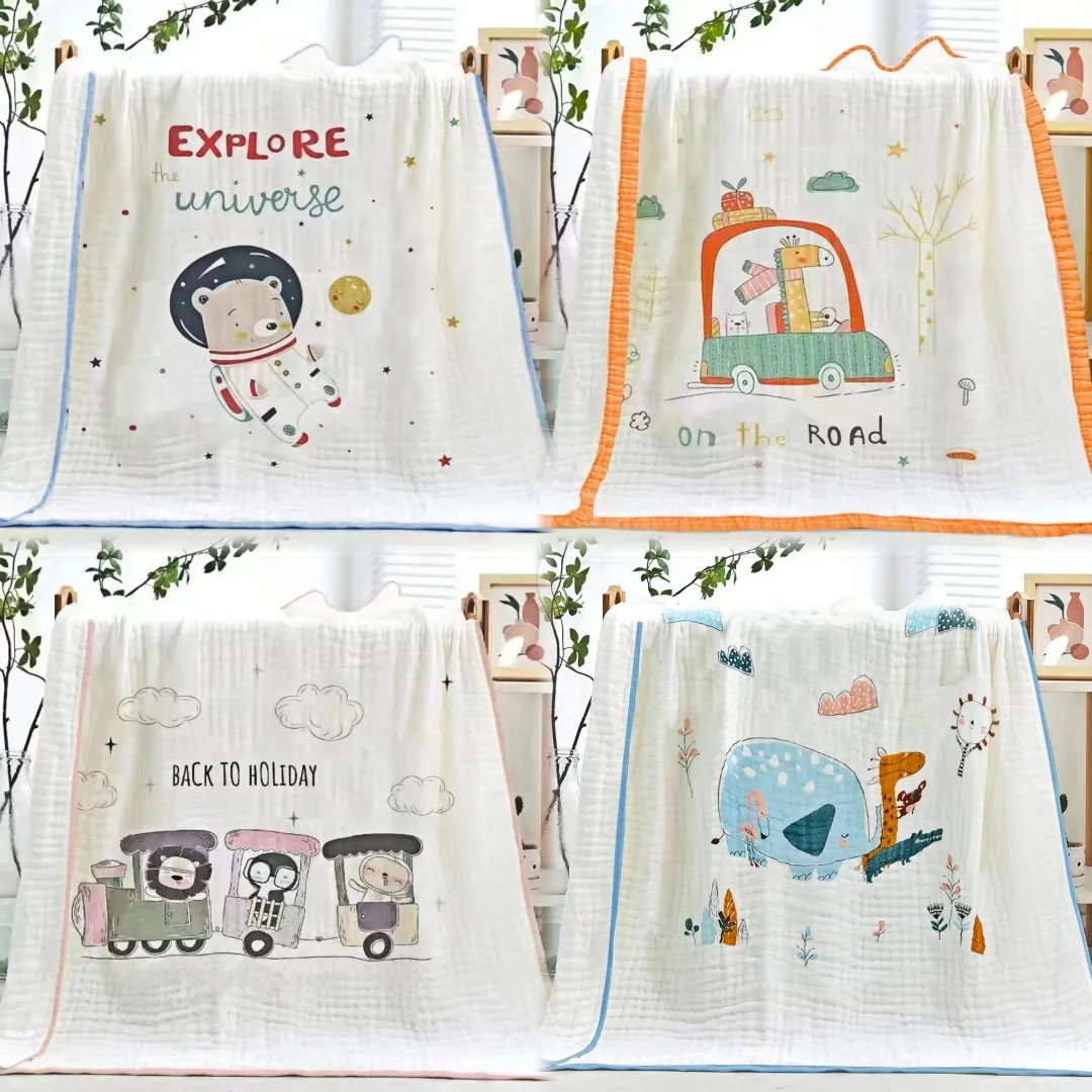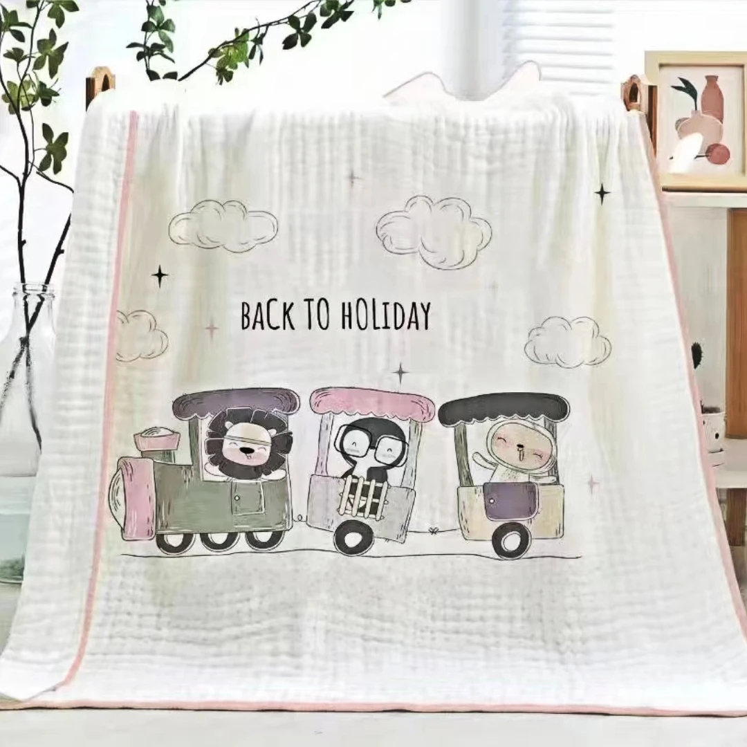 Children’s bath towel baby 6-layer gauze wrap pure cotton blanket comfortable soft skin-friendly cartoon design 100% cotton