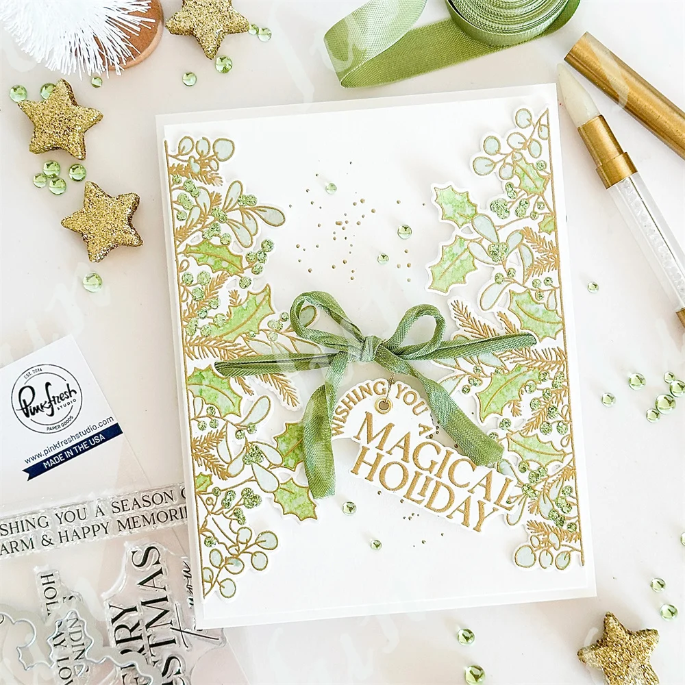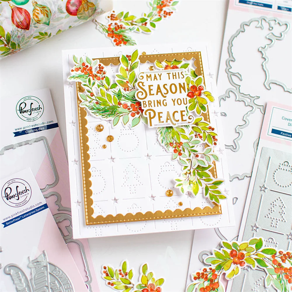 Z9172-Dies: Foliage border 1.6" x 5.25", A very Merry Christmas to you 1.6" x 2.5", A very Merry Christmas to you 1.6" x 2.5", A very Merry Christmas to you 1.6" x 2.5".