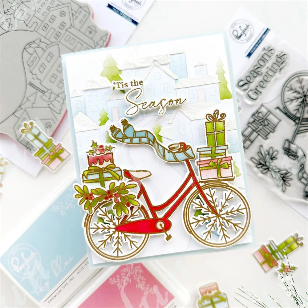 Z9169-Dies: Bicycle 3.7" x 4.4", Season's Greetings .8" x 1.9