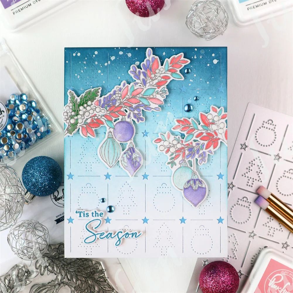 Z9173-Dies: Wreath cluster 3.5" x 4.5",Ornament cluster 3.5" x 5", 'Tis the season ,9" x 1.8", Deck the halls 1.4" x 2.2"
