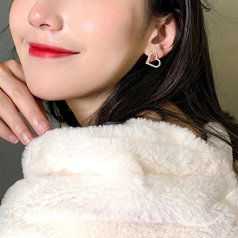 Christmas Red Zircon Crystal Bow Stud Earrings For Women Heart Shape Bowknot Christmas Earring Girl New Year Festival Jewelry