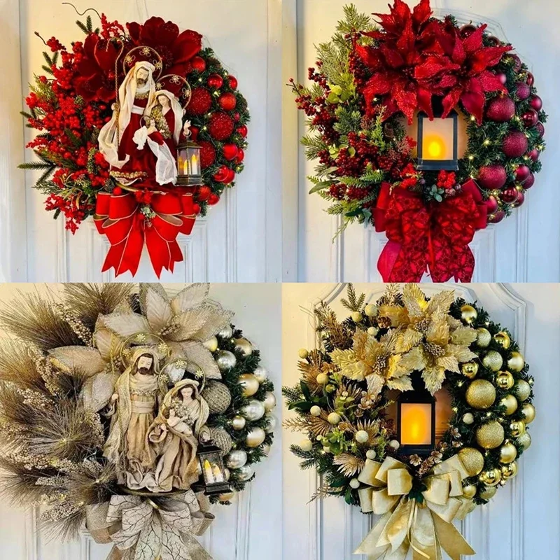 - Door hanger: Elegant Red Christmas Wreath Champagne Gold Christmas Wreath Window Do