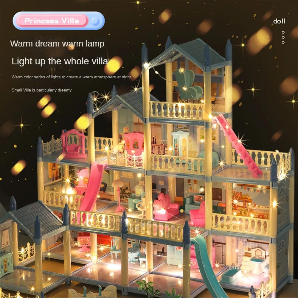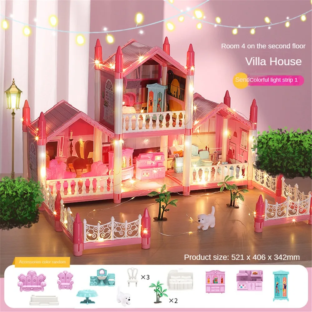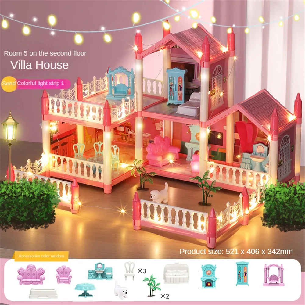 1 Set *(1 Villa, 2 Dolls, 1 Colorful Light Belt)