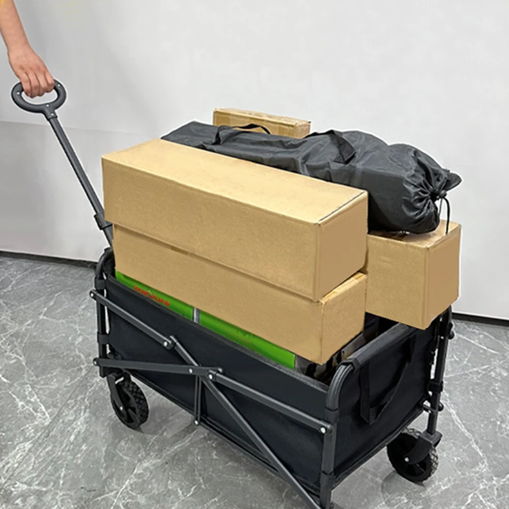 3.Adjustable and Convenient: The collapsible wagon cart features a retractable handle that can be adjusted to various heights, allowing for easy pushing or pulling. With its comfortable grip, it provides effortless transportation for camping equipment and other items.