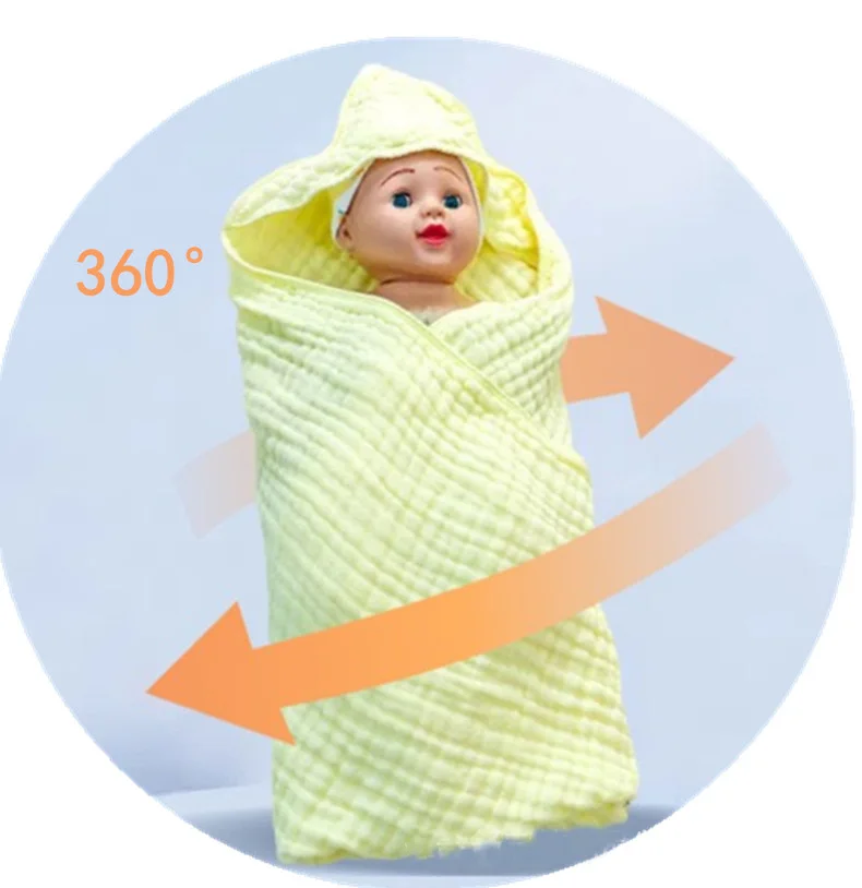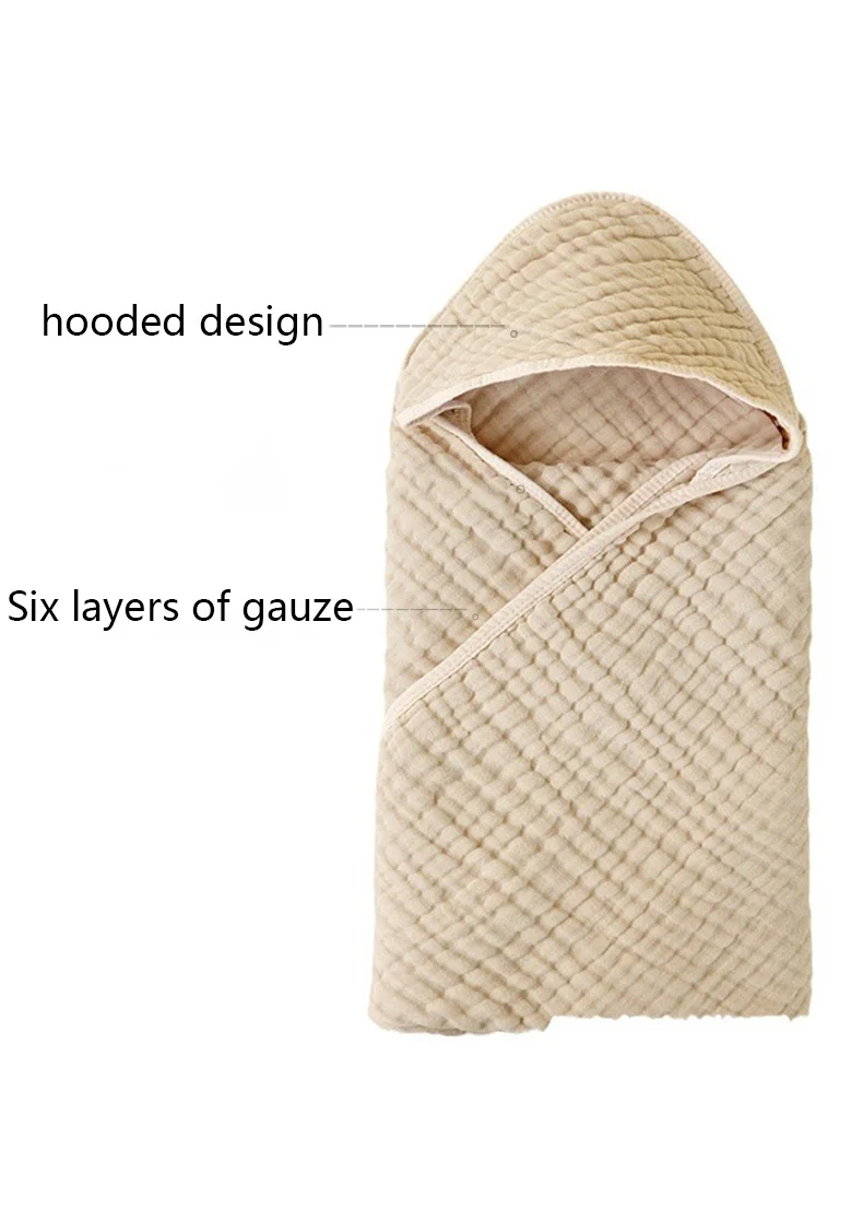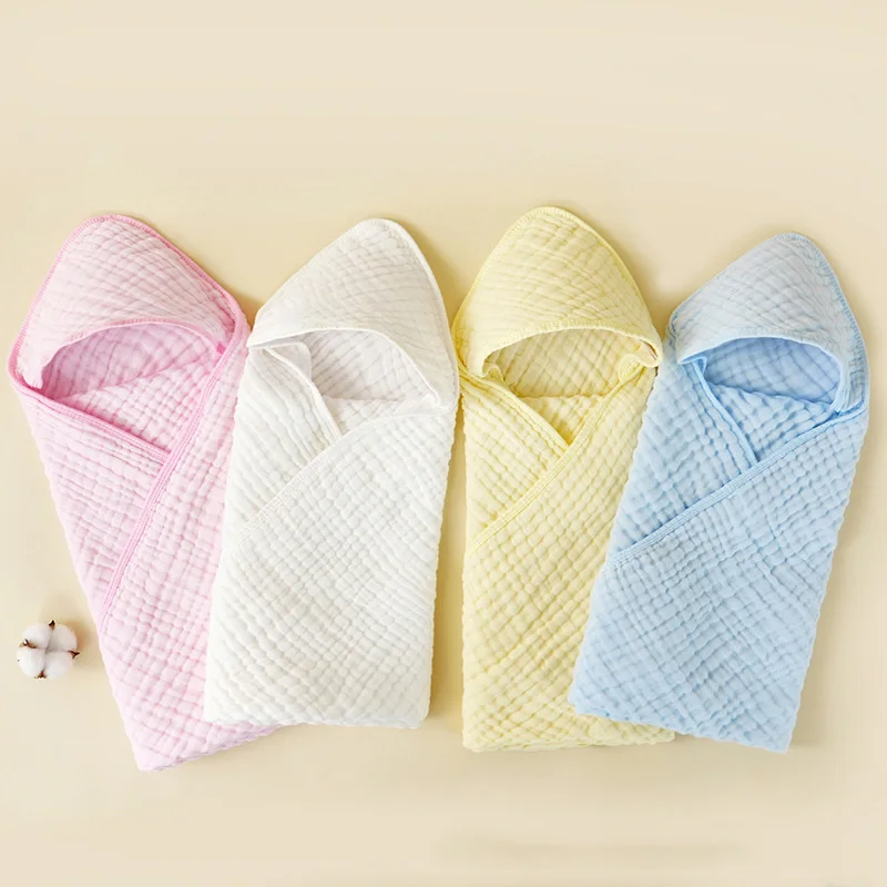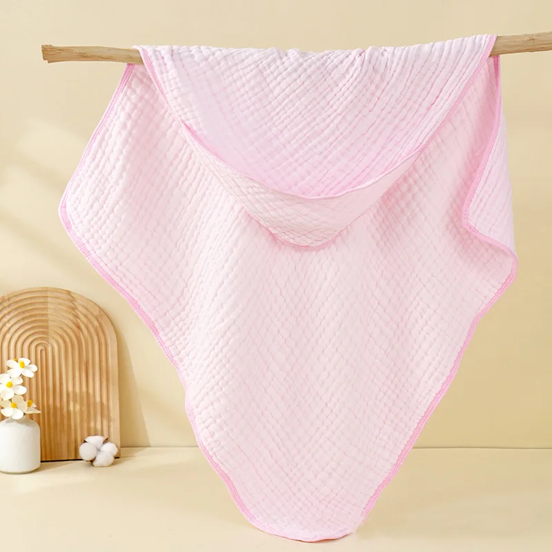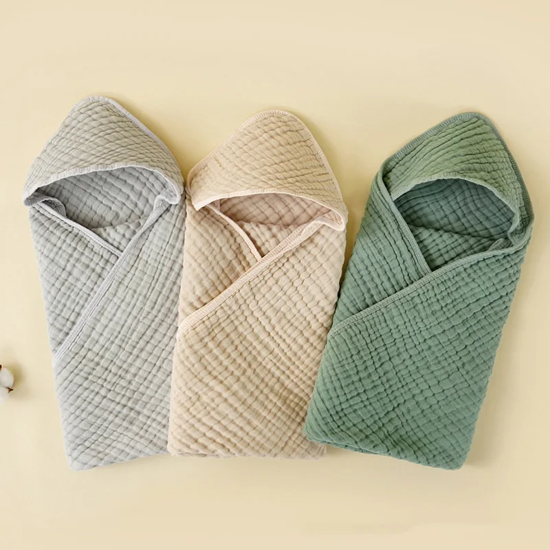Cotton Baby Newborn Wrap Blanket Solid Color Gauze Bath Towel Kids Bathrobe Hooded Towel Infant Swaddle Wrap for Boys Girls