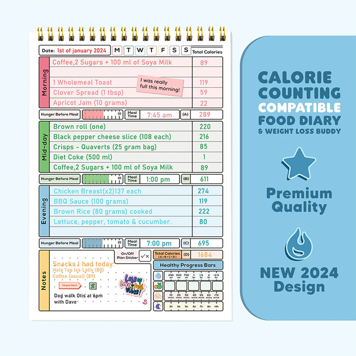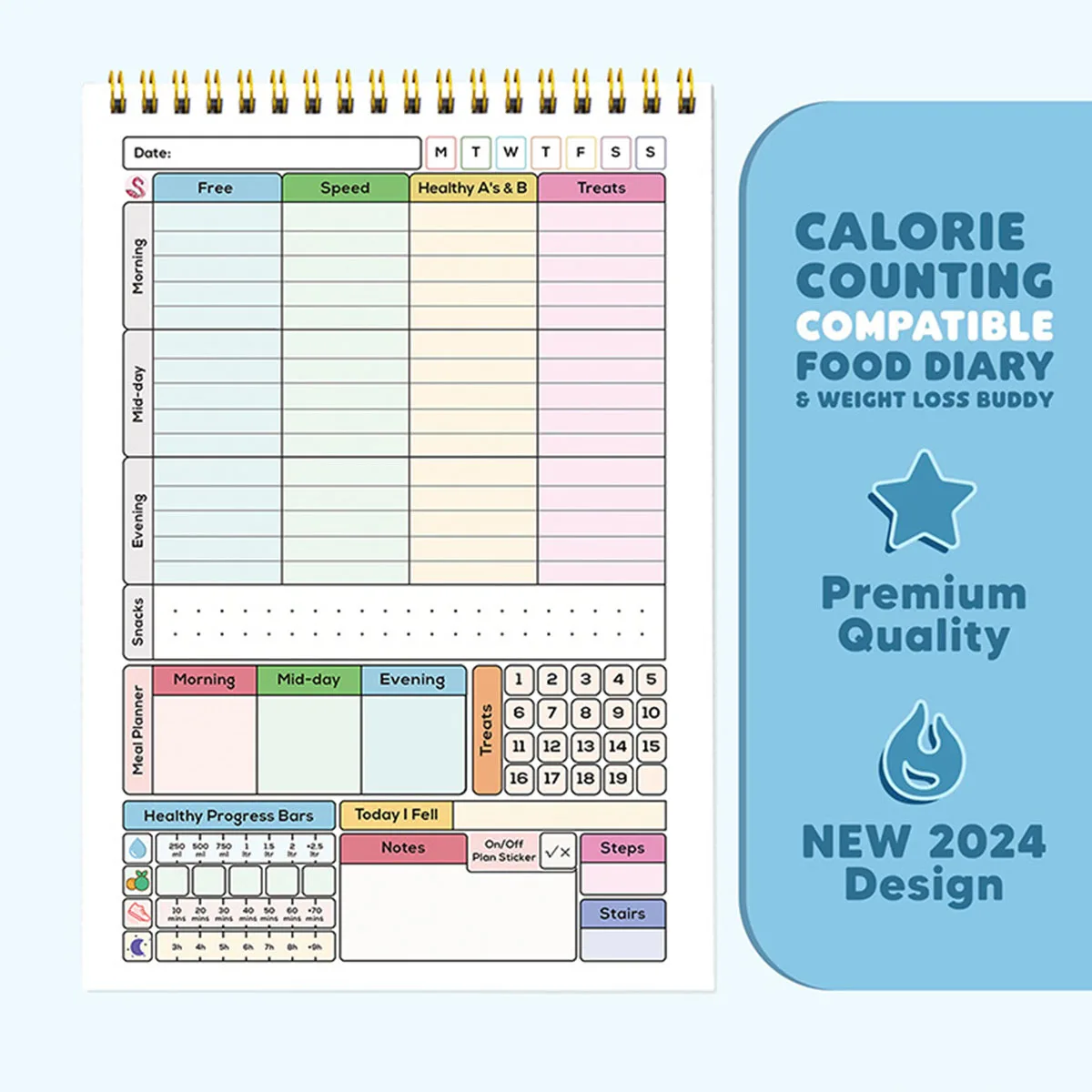 EMBRACE A HOLISTIC WELLNESS JOURNEY – Our daily wellness journal is designed to inspire both women and men on their path to achieving health, diet, and fitness goals while fostering a balanced lifestyle. The Wellness Planner employs a guided motivational system with tools and practices that encourage you to log food consumption, plan meals and fitness activities, cultivate positive habits, track self-care routines, and monitor progress towards your goals.