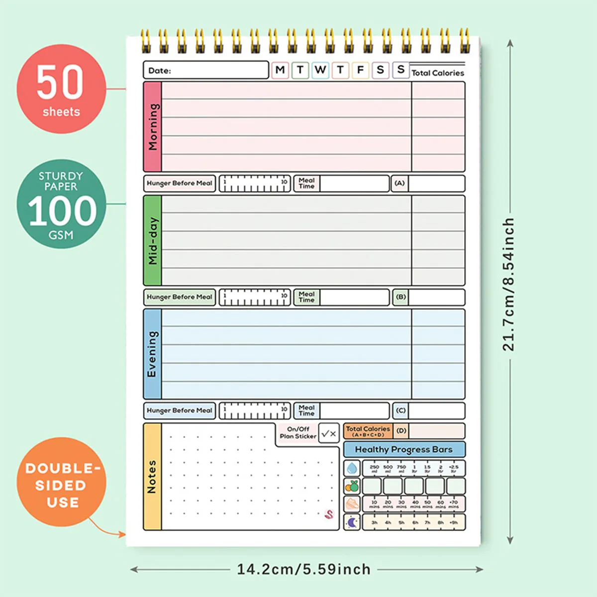PREMIUM QUALITY ASSURANCE – Crafted with high-quality 100gsm paper, our wellness journal minimizes ink leakage, fraying, and shading concerns, guaranteeing a seamless writing experience. The sturdy and flexible cover provides added protection for the pages, while the metal lay-flat twin-wire binding ensures durability and sustained usage throughout your wellness journey.