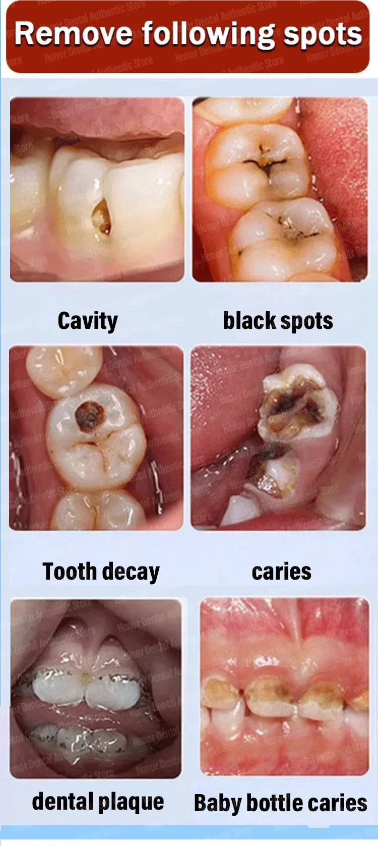 3. Heavy Treatment (10 pcs): Remove large dark spots and repair large cavities.