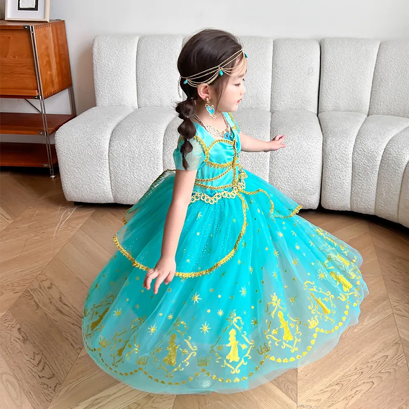 Disney Jasmine Princess Dress For Baby Girls Birthday Party Carnival Cosplay Aladdin Agic Lamp Kids Gown Prom Costume Clothing
