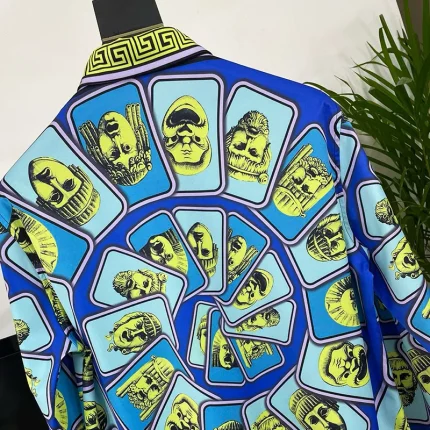 Trendy men's long-sleeved shirt polyester fabric men's wear light and light on the outside Various blue prints Oversized $5.86 – $10.63