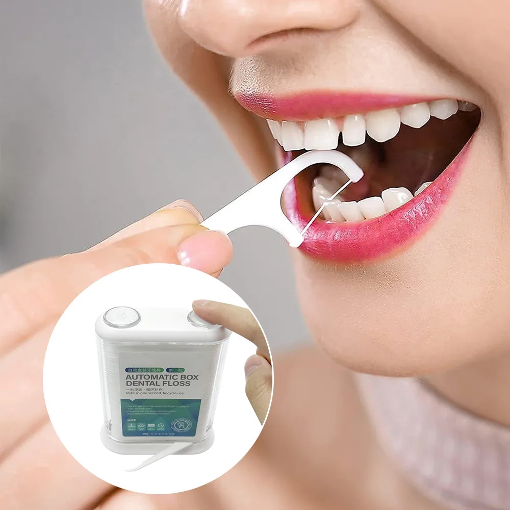 Home Store Personal Care Oral hygiene Disposable Pop-Up Automatic Dental Floss Box with 100 Count Floss Sticks Teeth Flosser Dispenser Toothpicks Oral Hygiene Care