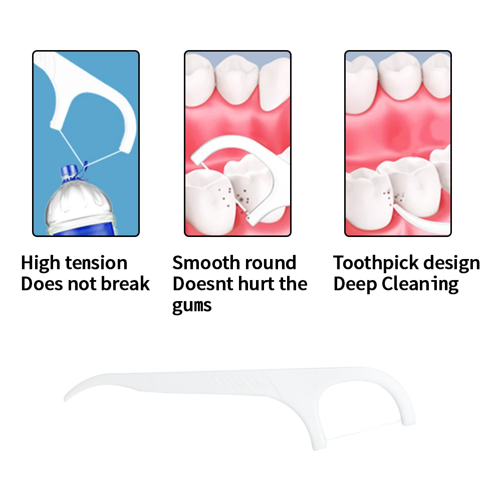 3. Ultra-thin and comfortable flosses that can slide smoothly between tight teeth, natural and durable flosses, the flosses is a round flosses that won't hurt your gums and won't get stuck in your teeth.